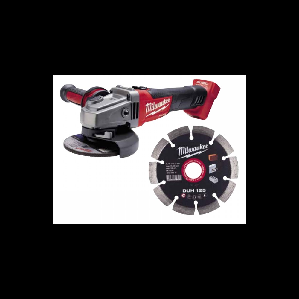 Шлифмашина угловая аккумуляторна MILWAUKEE, M18 FSAG125X-0, Ø125мм + Диск MILWAUKEE DUH 125 (10шт)