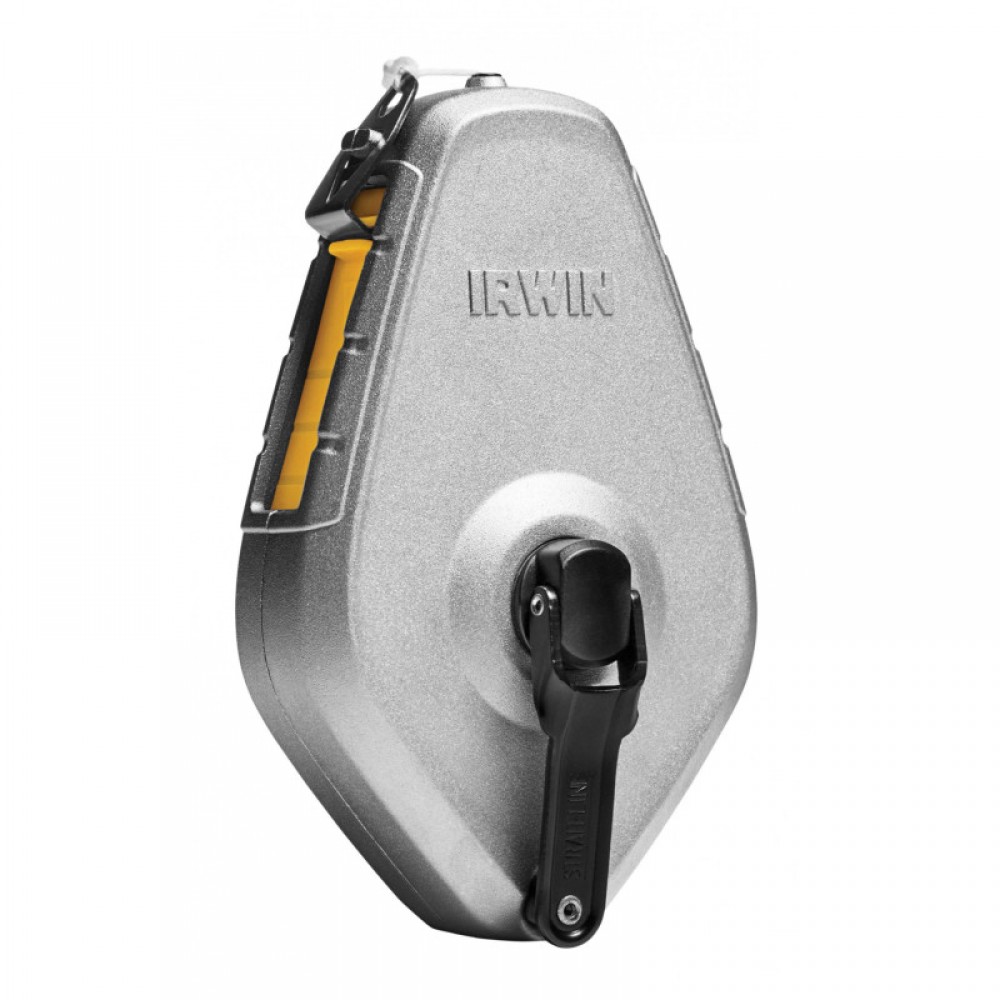 Шнур класичний розмітний в алюмінієвому корпусі, 30м/100', 24шт./уп., IRWIN • На 70% збільшено отвір для швидкого заправлення фарбником. • Зносостійкий шнур дозволяє зробити 5-6 відбивок без необхідності повторного моління. • Котушка для змотування з передавальним числом 1:1 • Високоміцний алюмінієвий корпус • Надійна сталева ручка з великим сердечником для тривалішого терміну служби • Без упаковки