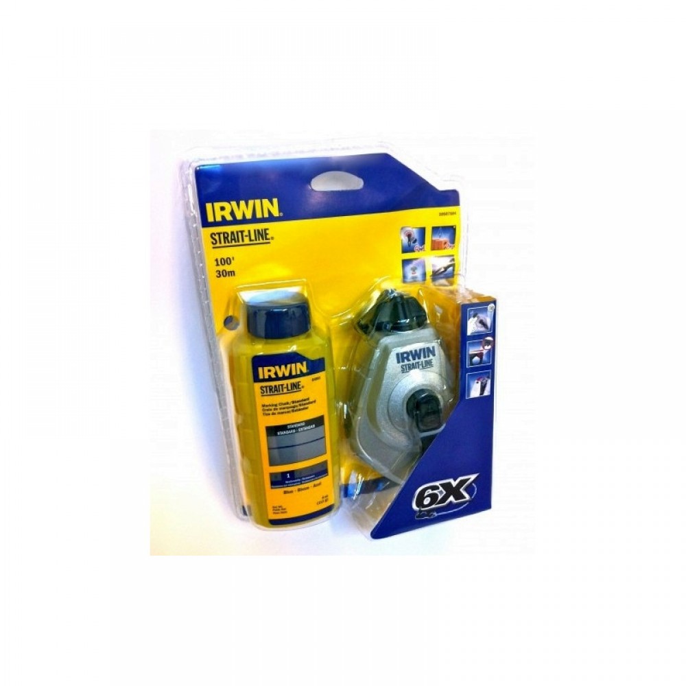 Шнур розмічальний Strait-Line 6X в алюмінієвому корпусі 30м/100'+ барвник синій 113г, IRWIN