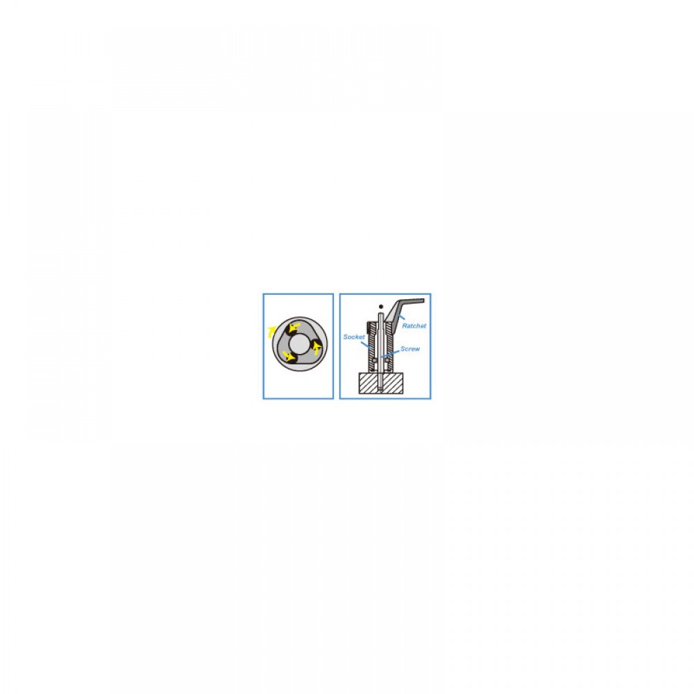 Конструкция корпуса представлена в форме цилиндра, внутри которого расположены три цилиндрических ролика, с помощью которых заклинивается шпилька, позволяя зажать или провернуть ее. Корпус выполнен из прочной стали, высокого качества, поверхность которого хромирована, что придает антикоррозийную устойчивость и обеспечит длительный срок службы инструмента. Съемник шпилек подходит, для применения не только в гараже, но и для профессионального использования в машиностроении, автомастерских и СТО.