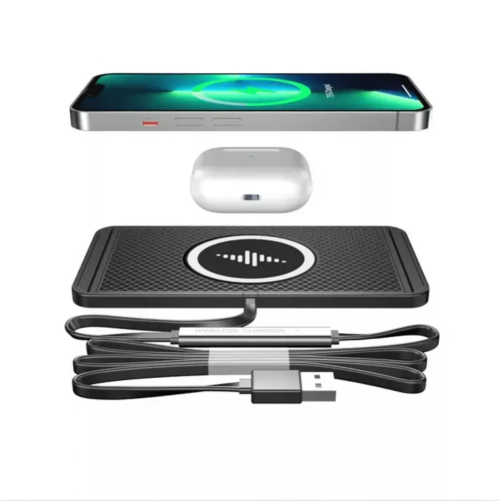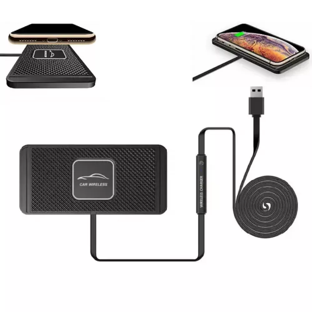 Силиконовый коврик для беспроводной зарядки в автомобиль. Это комфортный и надежный способ позаботится о расположении телефона во время движения автомобиля, функция беспроводной зарядки избавит от проблемы лишних проводов и не своевременной разрядки телефона.