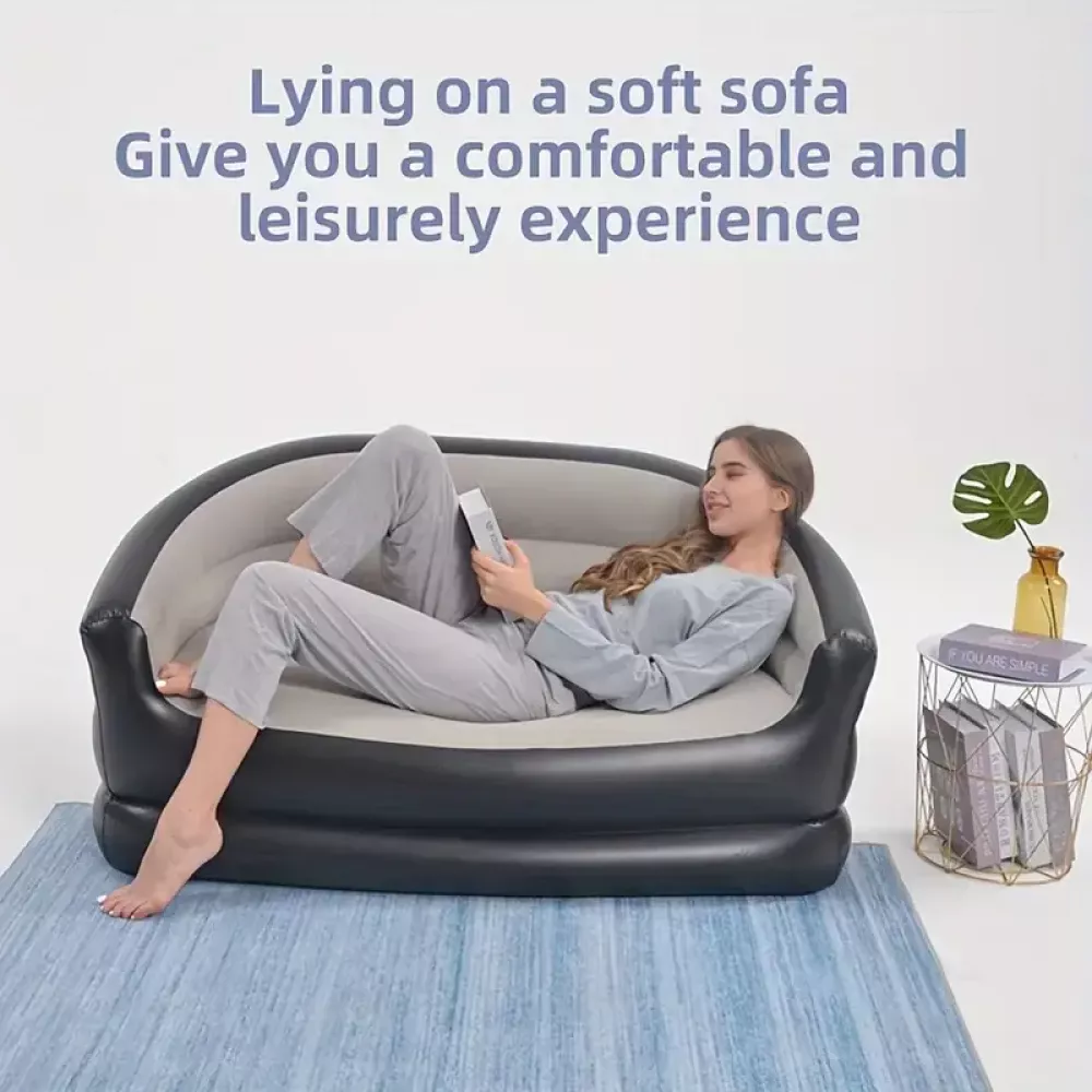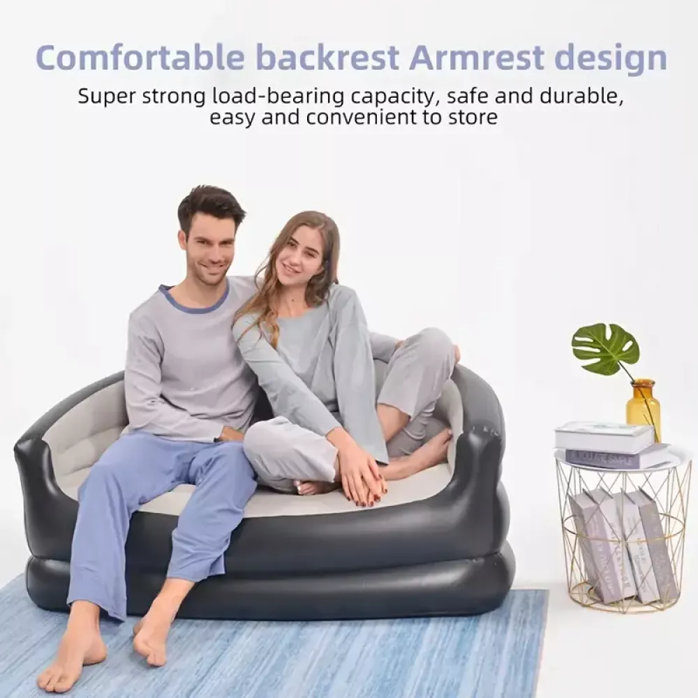 Этот надувной диван-кровать подойдет для использования в гостиной, на даче, во время поездок или в качестве временного спального места для гостей.