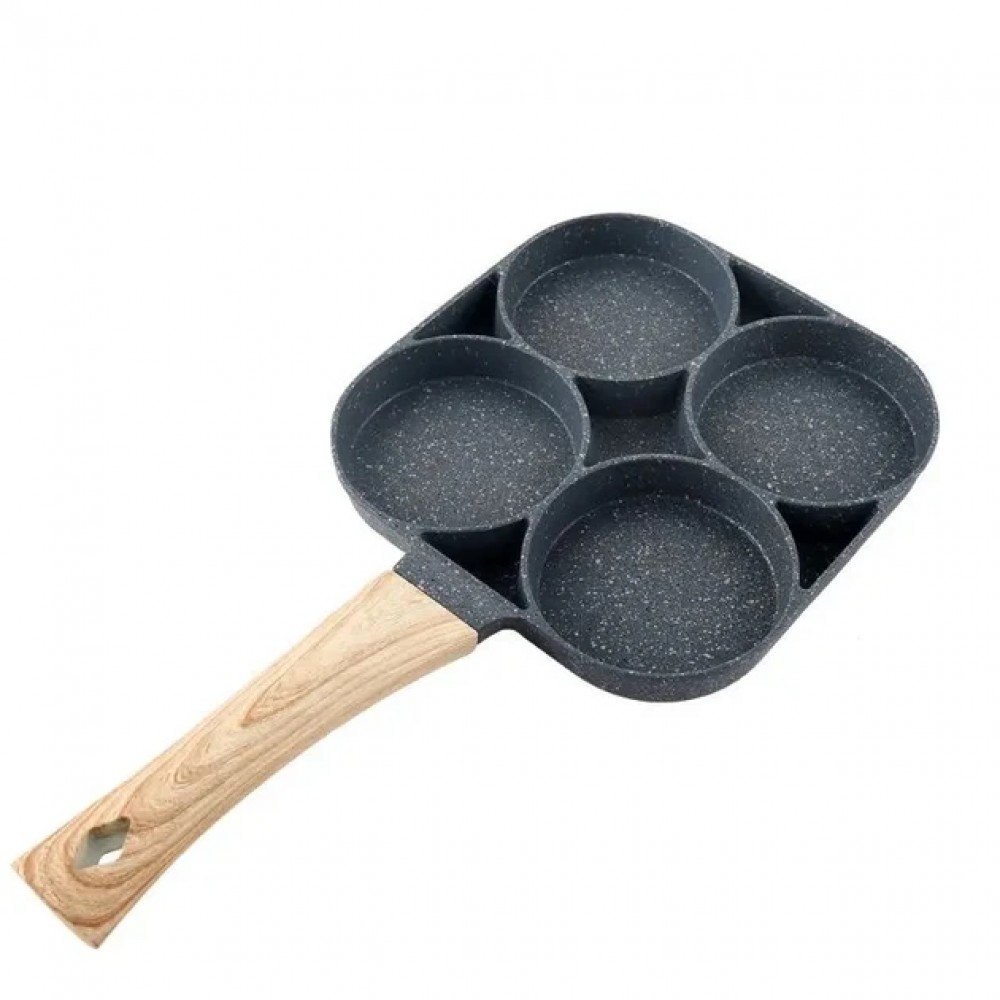 Сковорода имеет 4 отделенных друг от друга отсека, которые позволяют приготовить панкейки или яичницу идеально кругой формы.