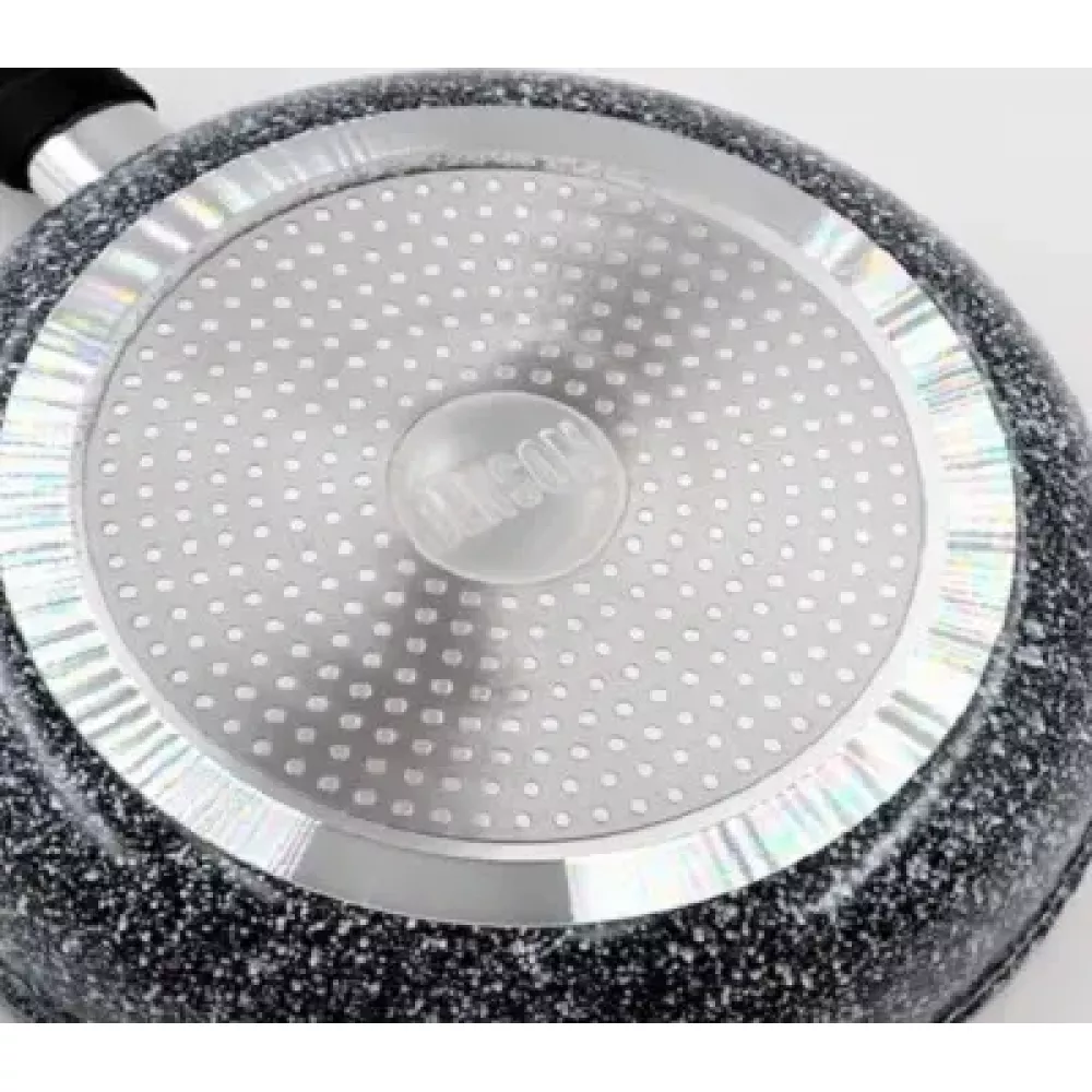 Сковорода фирмы Benson выполнена из высококачественного литого алюминия с мраморным антипригарным покрытием подходит для всех видов плит, в том числе и для индукционных. Утолщенное дно быстро и равномерно нагревается, хорошо удерживает температуру. Качественное антипригарное покрытие, не содержит вредных веществ и которое, благодаря его составу, легко чистить.