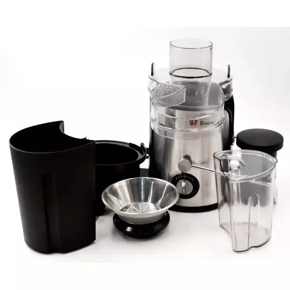 Domotec MS 5220 600W имеет отличный дизайн и позволяет изготовлять сок из мягких и твердых овощей и фруктов. Оснащен широкой камерой подачи, которая позволяет загружать плоды целиком, не требуя предварительной резки.