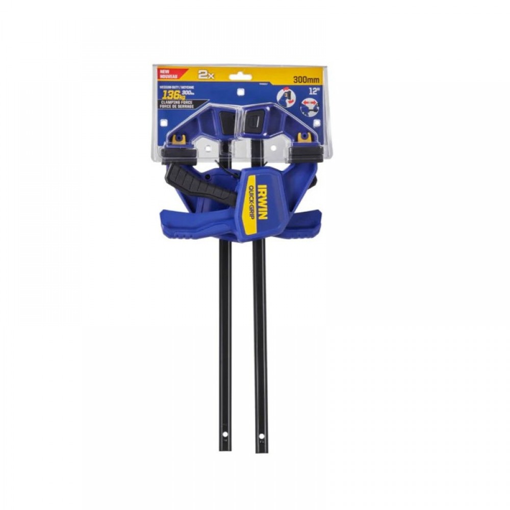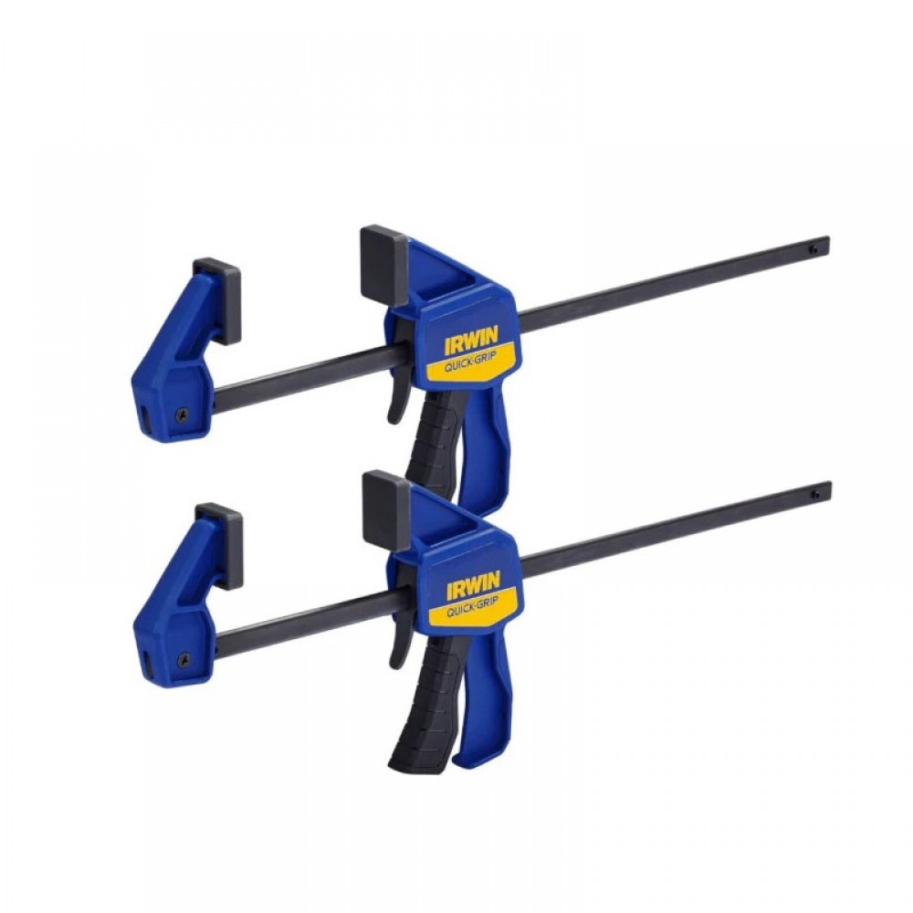 Irwin T5122QCEL7 Quick-Grip Medium-Duty Bar Clamp Twin Pack 300mm / 12" може бути перетворений із затискача на розширювач за лічені секунди! Поворотна губка, що замикається, дозволяє затискати нерівні поверхні, оснащена квадратними захисними накладками у стилі XP для захистити робочу поверхню від пошкоджень.