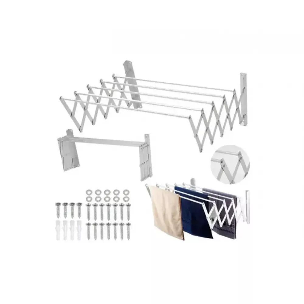 Сушилка для белья настенная раздвижная гармошка изготовлена из высококачественного металла, который хорошо противостоит механическим повреждениям, а также воздействию воды.