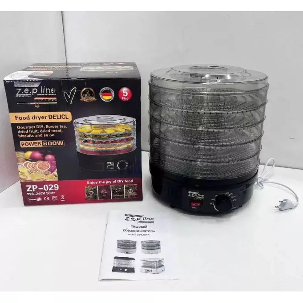 Сушилки для овощей и фруктов дегидратор Zepline ZP-029 электрический 800 Вт 5 секций. Вы можете использовать ее для высушивания фруктов, овощей, грибов, ягод и лекарственных трав, которые сохранят максимум полезных свойств. Прочный пластиковый корпус и наличие пяти секций для размещения продуктов делают его эффективным и надежным. Прозрачная крышка позволяет следить за процессом высушивания.