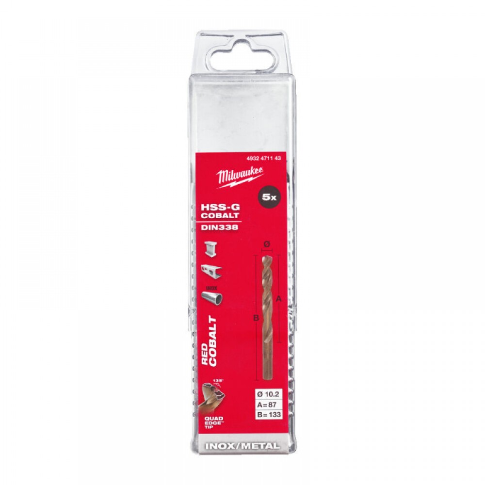 Сверло по металлу HSS-Co MILWAUKEE, DIN338, Ø10,2х133х87мм, (5шт)