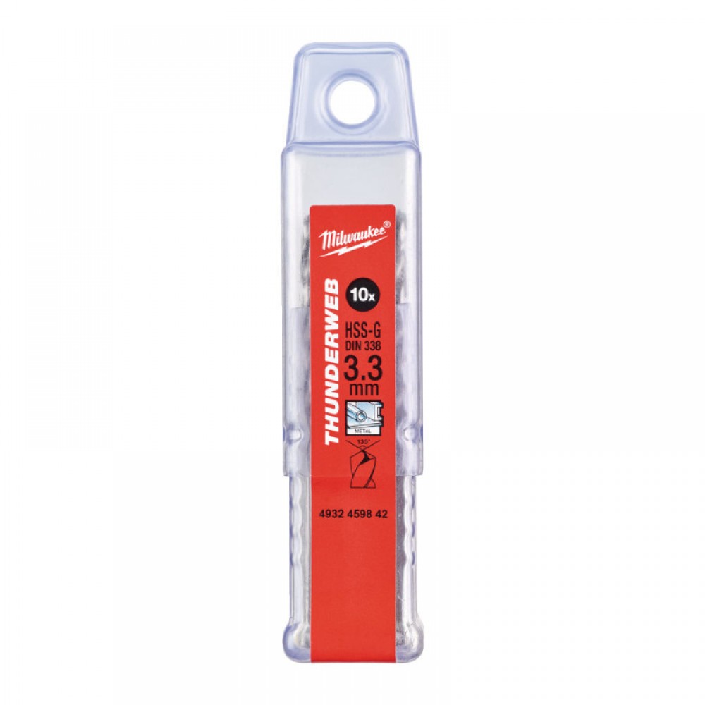 Свердло по металу THUNDERWEB HSS-G MILWAUKEE, DIN338, Ø3,3х65х36мм, (10шт)