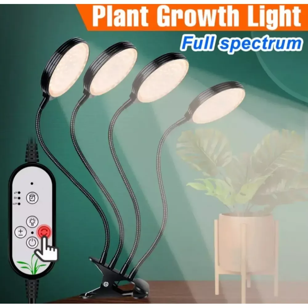 Світлодіодна фітолампа для рослин Suntech на 4 головки повний спектр з таймером та гнучким кронштейном