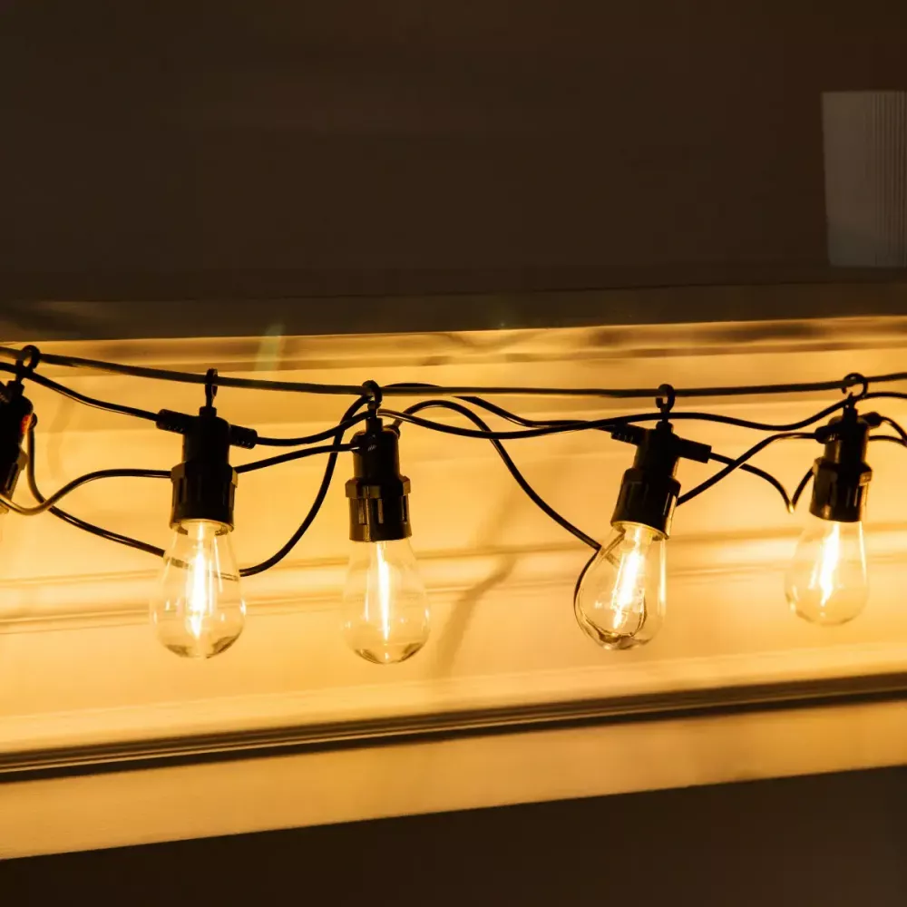 Уличная ретро-гирлянда поможет создать атмосферу уюта и ностальгии на вашем участке. Гирлянда имеет классический дизайн и подходит для декорирования беседок, веранд, деревьев и кустов, экстерьера кафе и ресторанов, а также ее можно использовать в помещении в качестве стильного элемента интерьера или дополнительного источника освещения.
