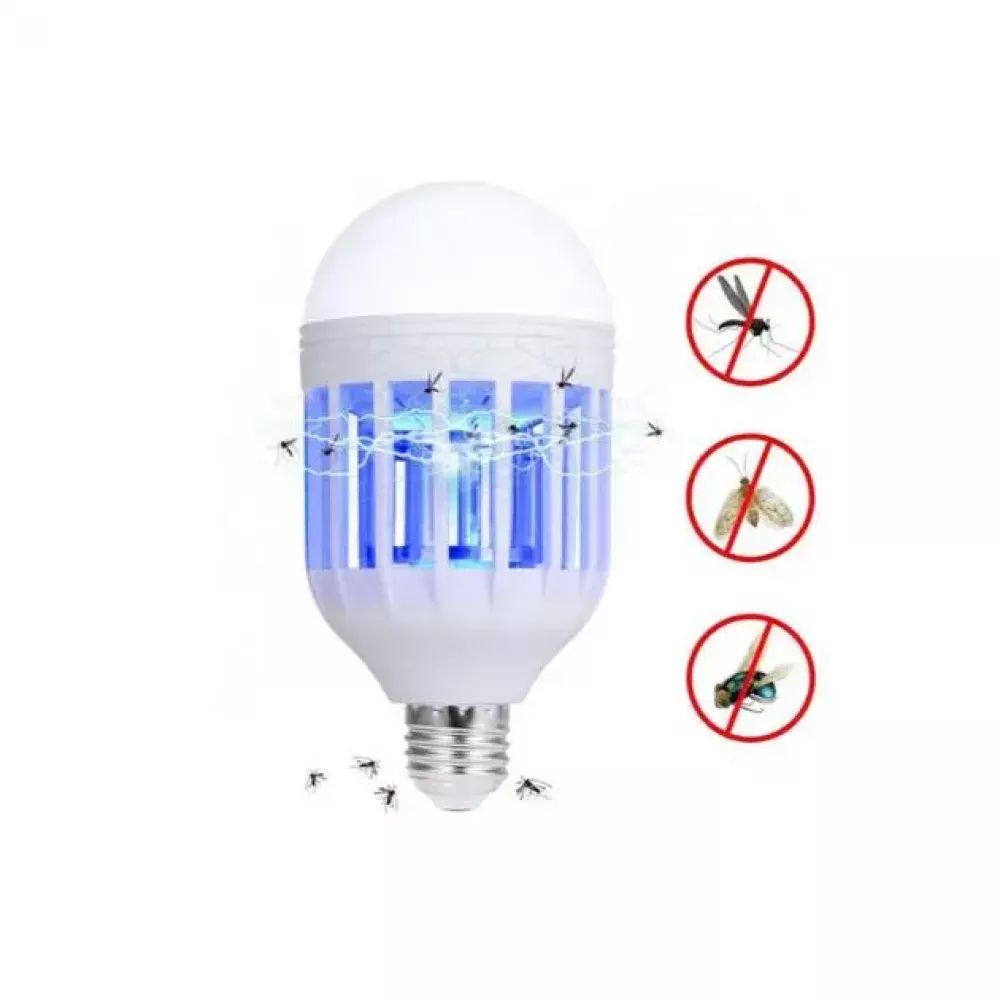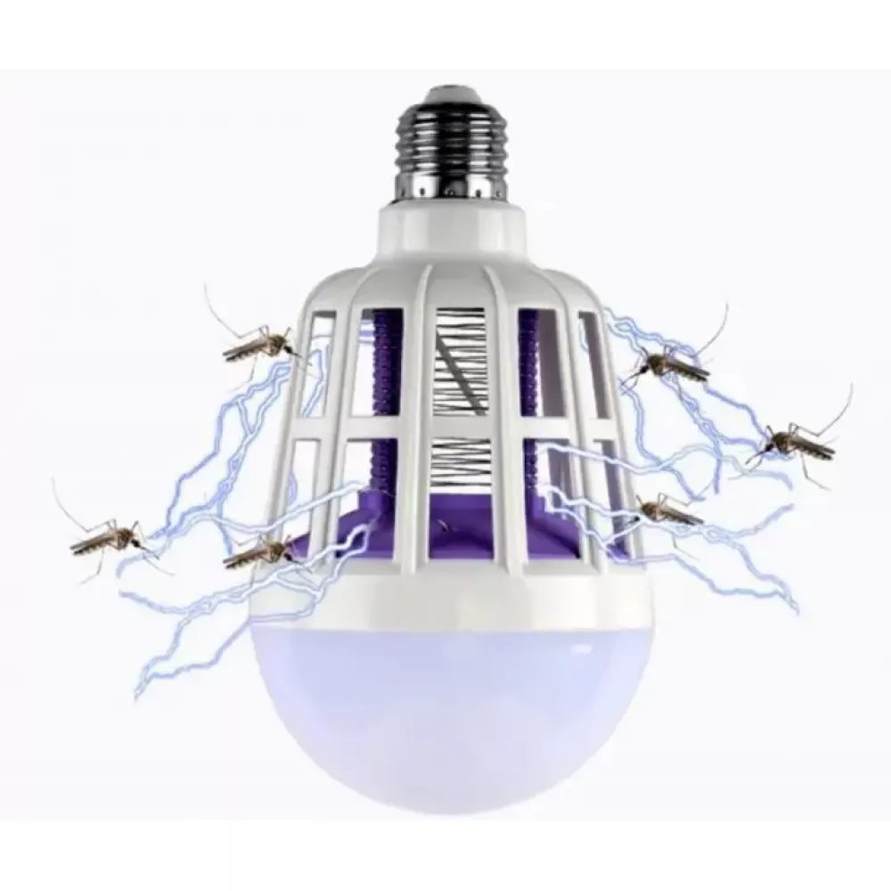 Самая светодиодная лампа обеспечивает световой поток 600 люменов нейтрального белого цвета для обычного освещения и светит еще в ультрафиолете для привлечения насекомых. Режим переключения лампы – выключателем настенным. Комаров, мух и других насекомых убивает током, а для очистки лампы достаточно выкрутить лампочку и вытряхнуть насекомые.
