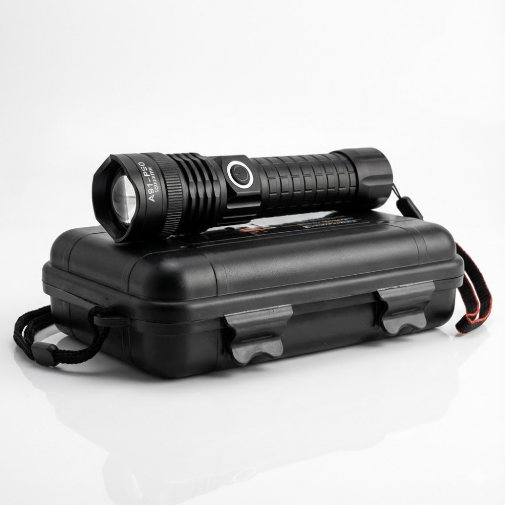 Фонарь оснащён функцией ZOOM: оптический зум от широкого светового пятна до узконаправленного дальнего луча, что удобно и для работы на близкой дистанции, и для освещения удалённых объектов. Питание — от аккумулятора 18650 ёмкостью 6800 mAh, который идёт в комплекте. Низкое энергопотребление позволяет реже подзаряжать фонарик, а компактные размеры делают его удобным для ношения в кармане, сумке или рюкзаке.
