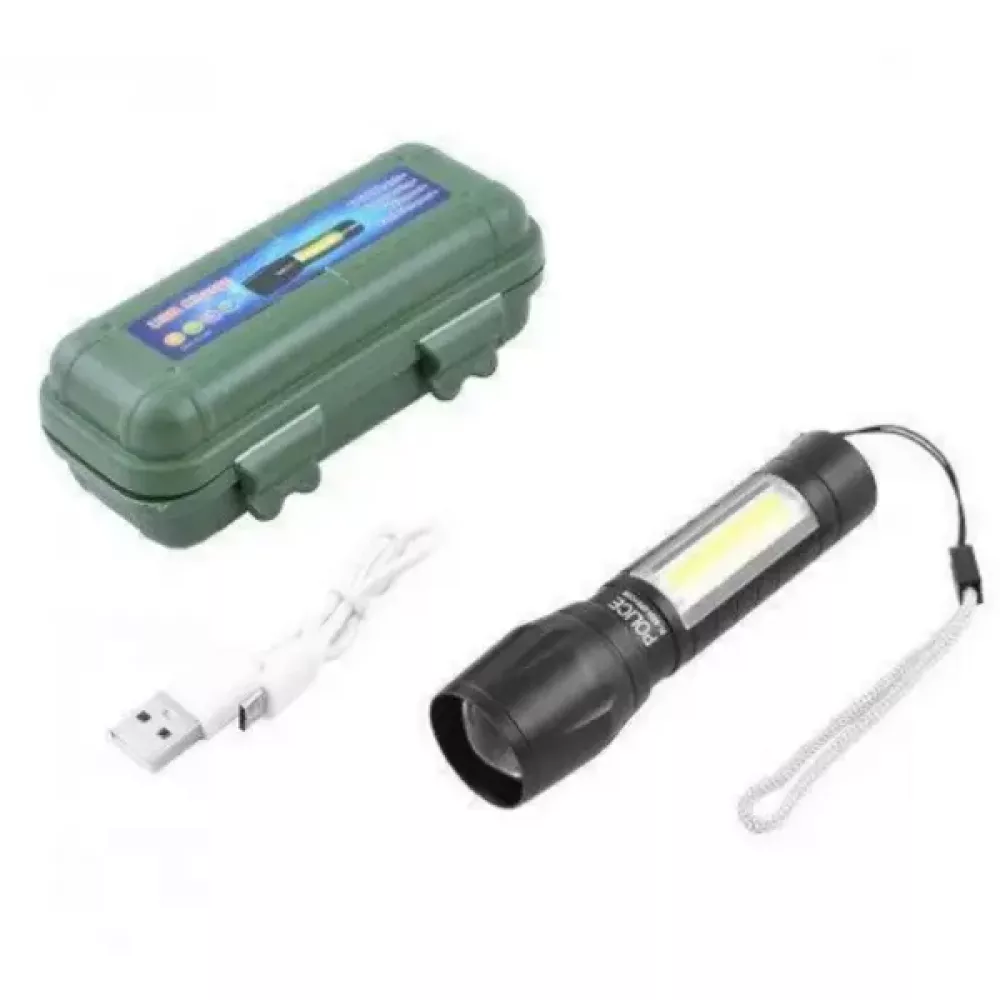 Характеристики Светодиодный фонарик Bailong Police ручной на аккумуляторах с COB USB BL-511 в пластиковом чехле
