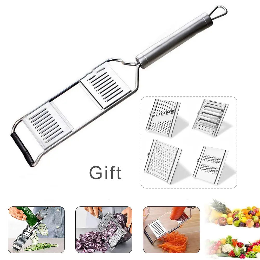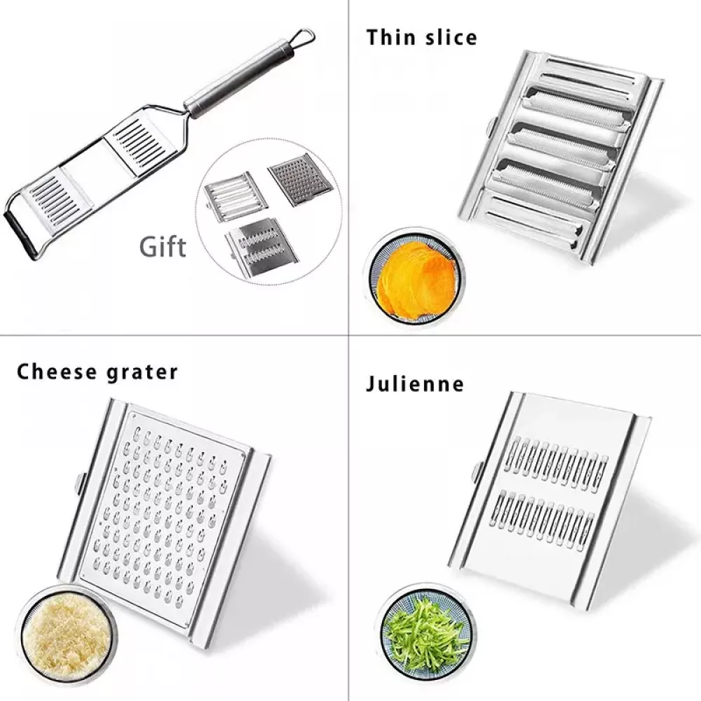 Має 3 робочі насадки з різними поверхнями: дрібними, середніми, великими отворами, та ніж для шатківниці. Поверхня з дрібними отворами знадобиться для натирання картоплі чи цедри. Середні та великі використовуються для натирання овочів. Шинковка призначена для капусти та нарізки картоплі тонкими кружальцями.