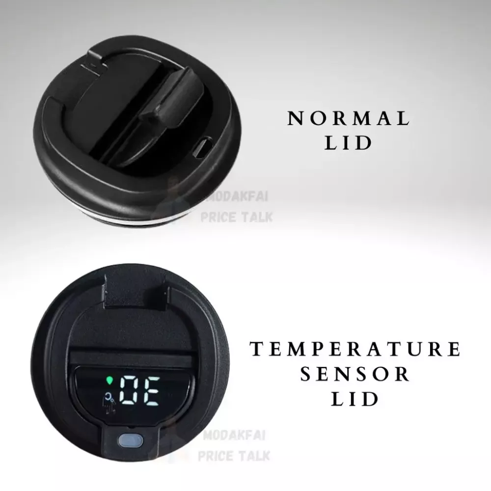 Умный термос с температурным датчиком оснащен специальной кнопкой для открытия крышки и ее блокировки.