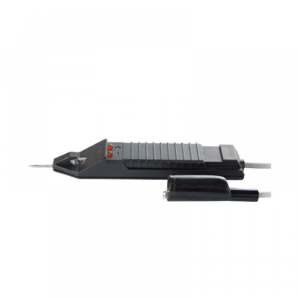 Используется для проведения электротехнических работ. Часто применяется при ремонте автомобильной электропроводки. Приспособление оснащено зажимом "крокодил" на гибком спиральном шнуре и иглой для замера напряжения сквозь изоляцию.