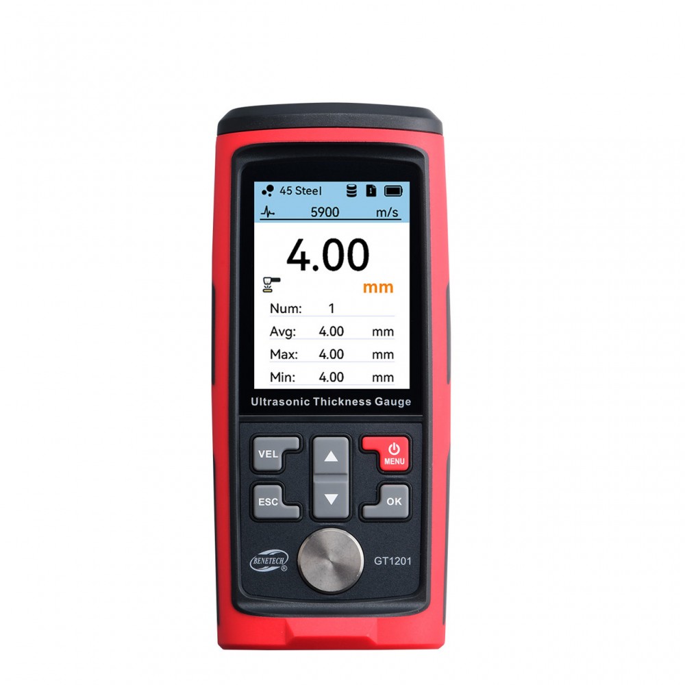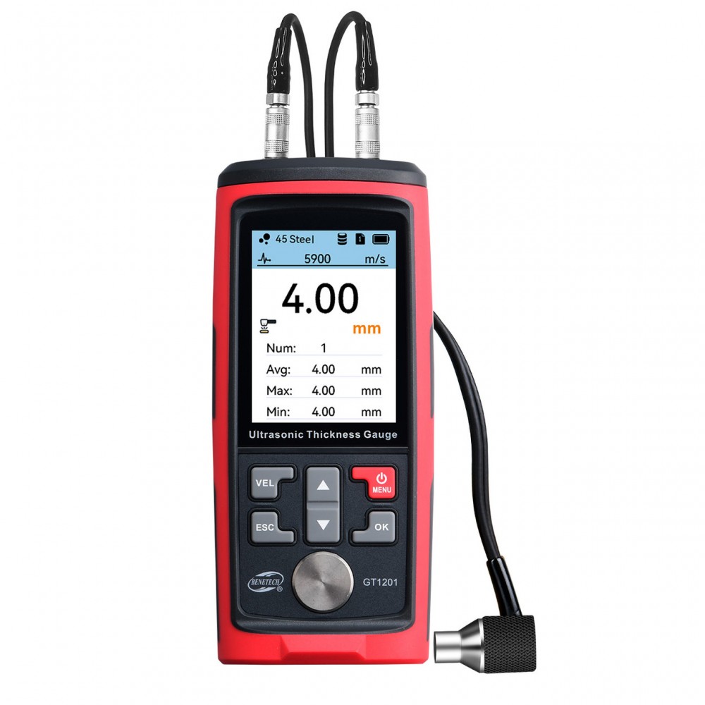 Ультразвуковий товщиномір BENETECH GT1201 — це портативний прилад, призначений для точного вимірювання товщини різних матеріалів методом ультразвукового неруйнівного контролю. Завдяки використанню п'єзоелектричного ефекту поляризованої кераміки, він забезпечує швидке та надійне визначення товщини виробів без пошкодження їхньої поверхні.