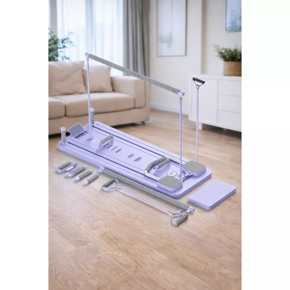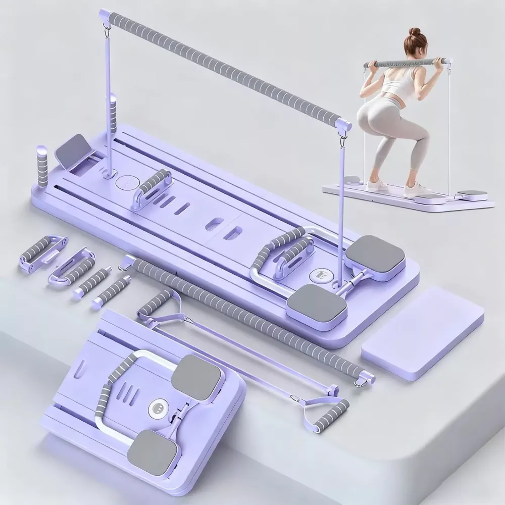 Складний тренажер для пілатес Reformer забезпечує повноцінне тренування всього тіла, покращуючи силу, гнучкість та поставу прямо у вас вдома. Його компактна ергономічна конструкція ідеально підходить для невеликих приміщень, забезпечуючи результати студійної якості без громіздкого спортивного обладнання.