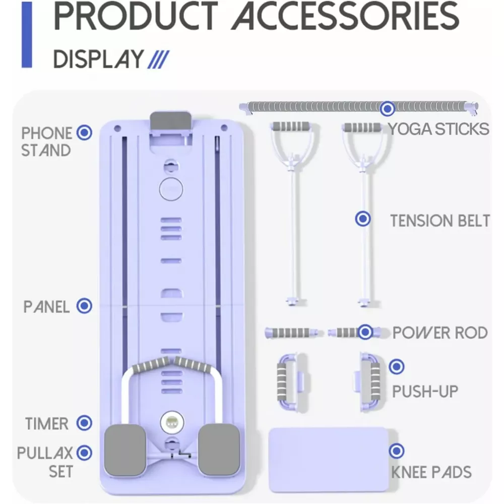 Тренажер для пілатесу Реформер MM3000 Для преса/ніг/присідання, з резинками Фіолетовий