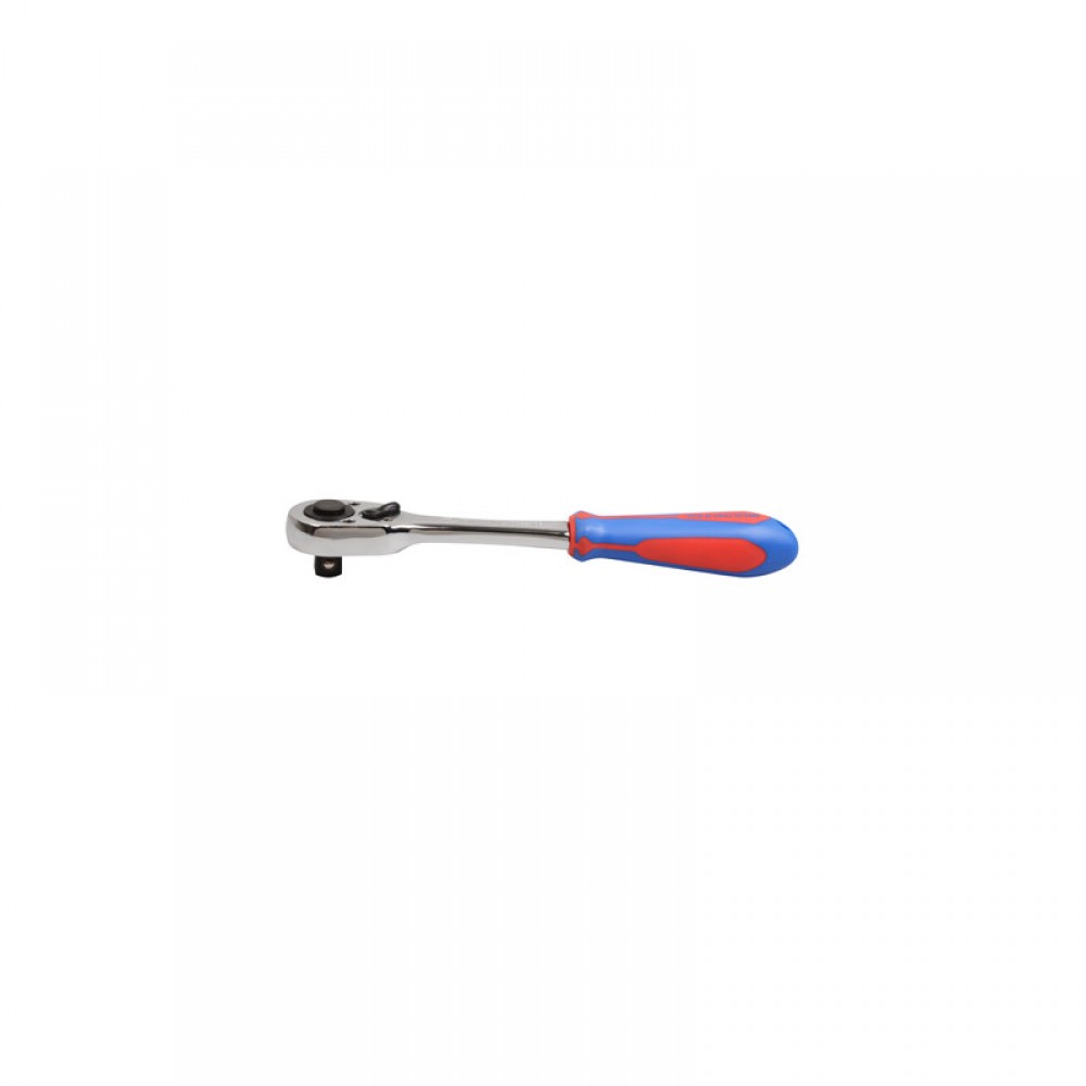 Тріскачка 1/2" 250мм (обгумована рукоятка) KINGTONY 4779-10GR Тріскачка King Tony 1/2" 45 зубців (4766-10G): Тріскачка King Tony 4766-10G є частиною збірного слюсарно-монтажного інструменту, застосовується спільно з торцевими головками та допоміжними інструментами при монтажі/демонтажі різьбових з'єднань. Завдяки храповику майстер може безперервно працювати з різьбовими з'єднанням, не переставляючи щоразу інструмент, на відміну від стандартних гайкових ключів. Для більшої оперативності та комфорту в роботі тріскачка оснащена реверсивним механізмом та кнопкою швидкого скидання. Реверс з прапорцевим перемикачем дозволяє швидко змінювати напрямок обертання в залежності від типу різьблення, а також роботи на закручування або відкручування кріплення. Кнопка швидкого скидання допомагає швидко звільнити непотрібну голівку та за лічені секунди змінити іншу. Хроповик тріскачки оснащений механізмом на 45 зубів. Середній розмір зубів і невелика амплітуда до клацання роблять цю тріскачку універсальним варіантом для вирішення більшості видів завдань. Тіло тріскачки виготовлене із хром-ванадієвої сталі, а приєднувальний квадрат із хром-молібденової сталі. Така комбінація матеріалів дозволила досягти максимальних експлуатаційних характеристик та зносостійкості.