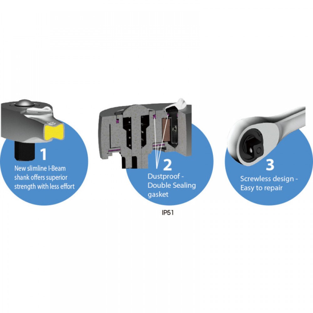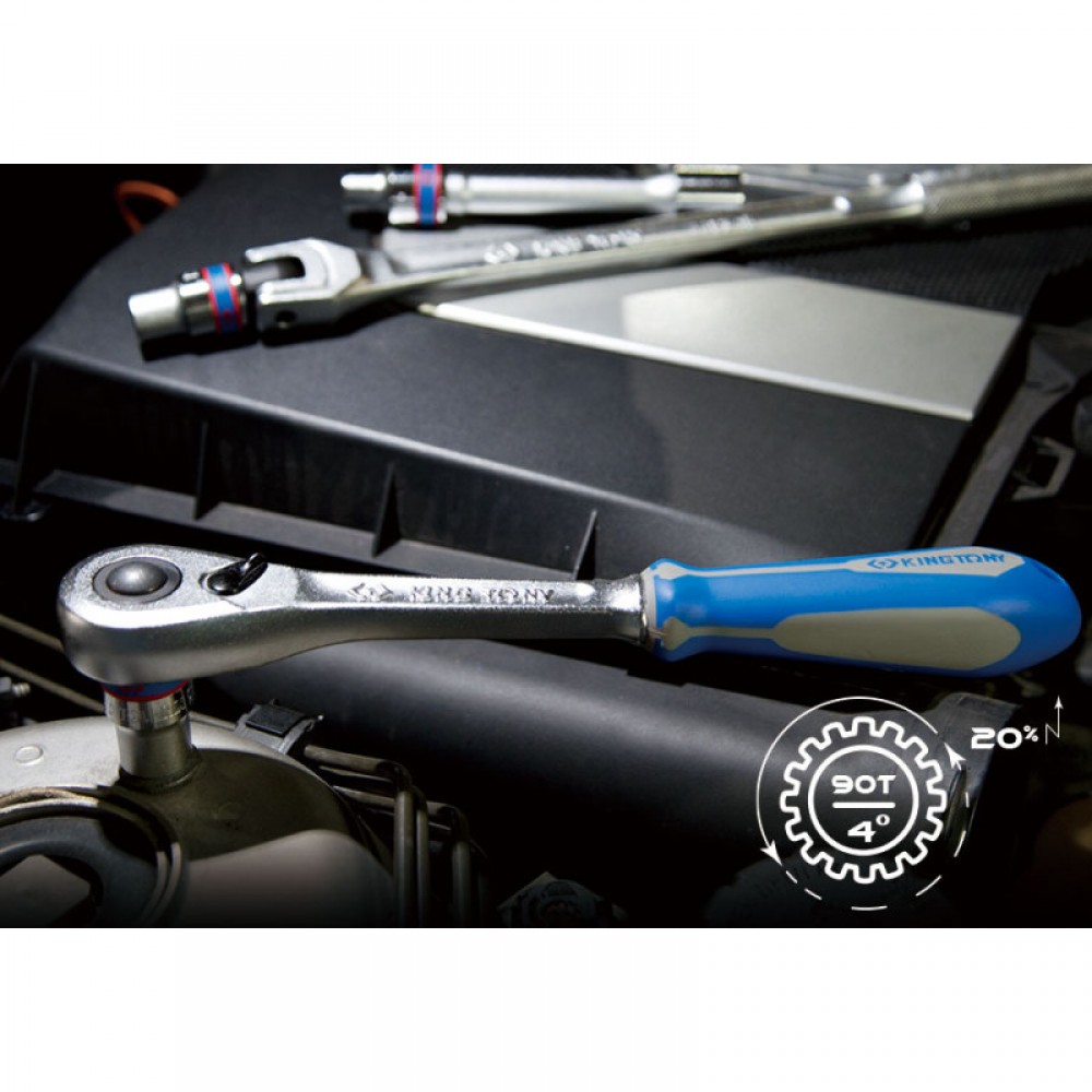 Трещотка 1/4", 90 зубцов, флажковая с кнопкой. IP51.