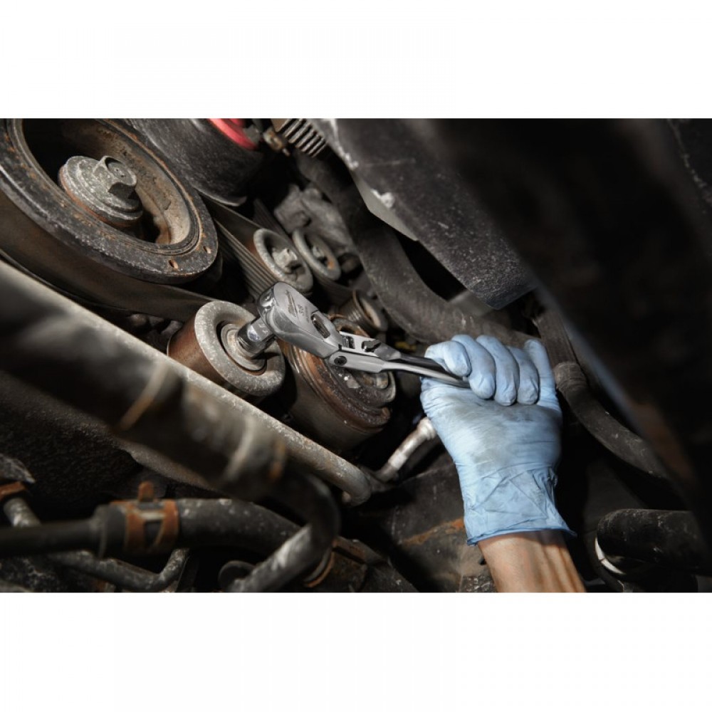 Механизм с 90 зубьями обеспечивает срабатывание трещотки при повороте на 4° при работе в стесненных условиях.