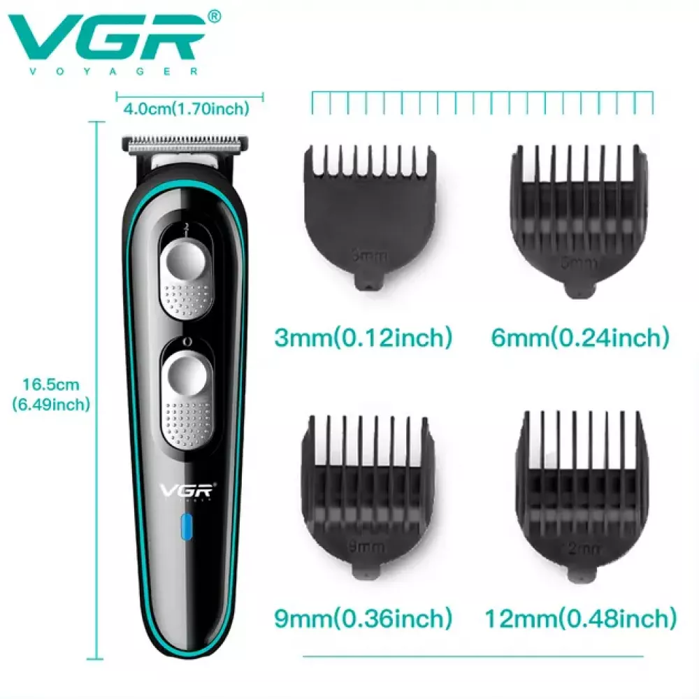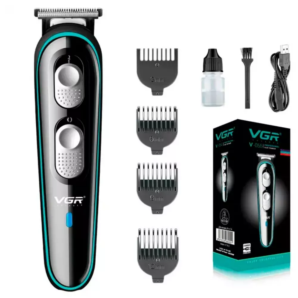 Триммер аккумуляторный, машинка для стрижки VGR V-055 с регулятором высоты, 4 насадки