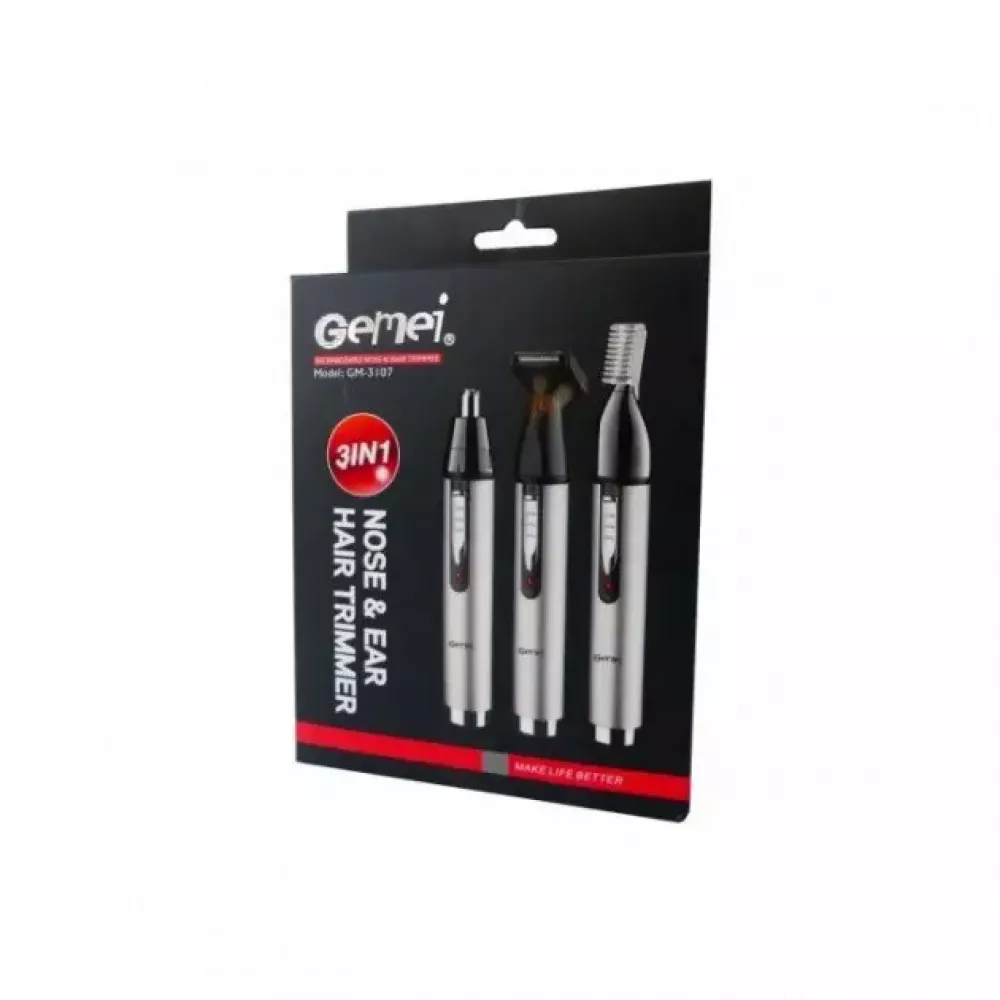 Триммер для волос Gemei GM 3107, 3 в 1 - для удаления волос из носа и ушей, для окантовки и подстригания бровей. Gemei GM-3107 предназначен для бережного удаления нежелательных волосков в носу и ушах. Удобная головка обеспечивают быстрое, простое и комфортное подравнивание без неприятных ощущений.