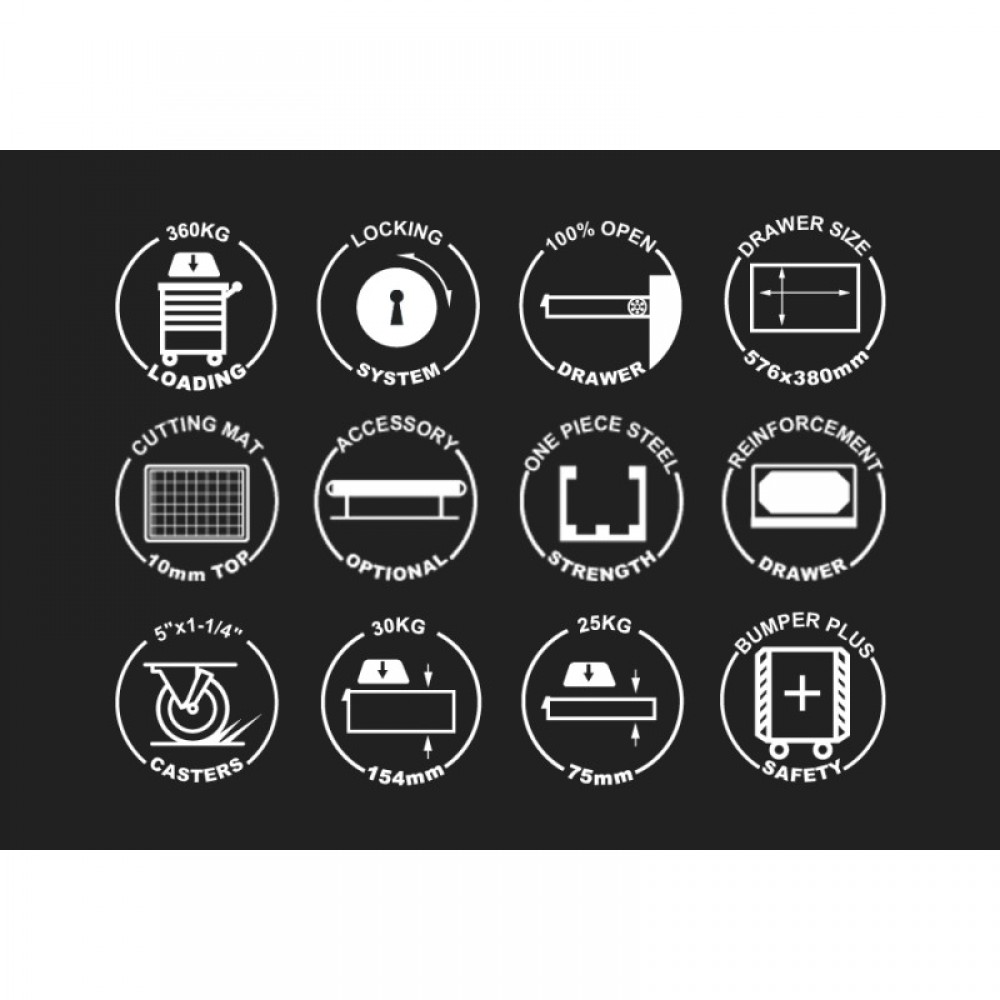 Тележка инструментальная 7 полочная с бампером 87634-7В