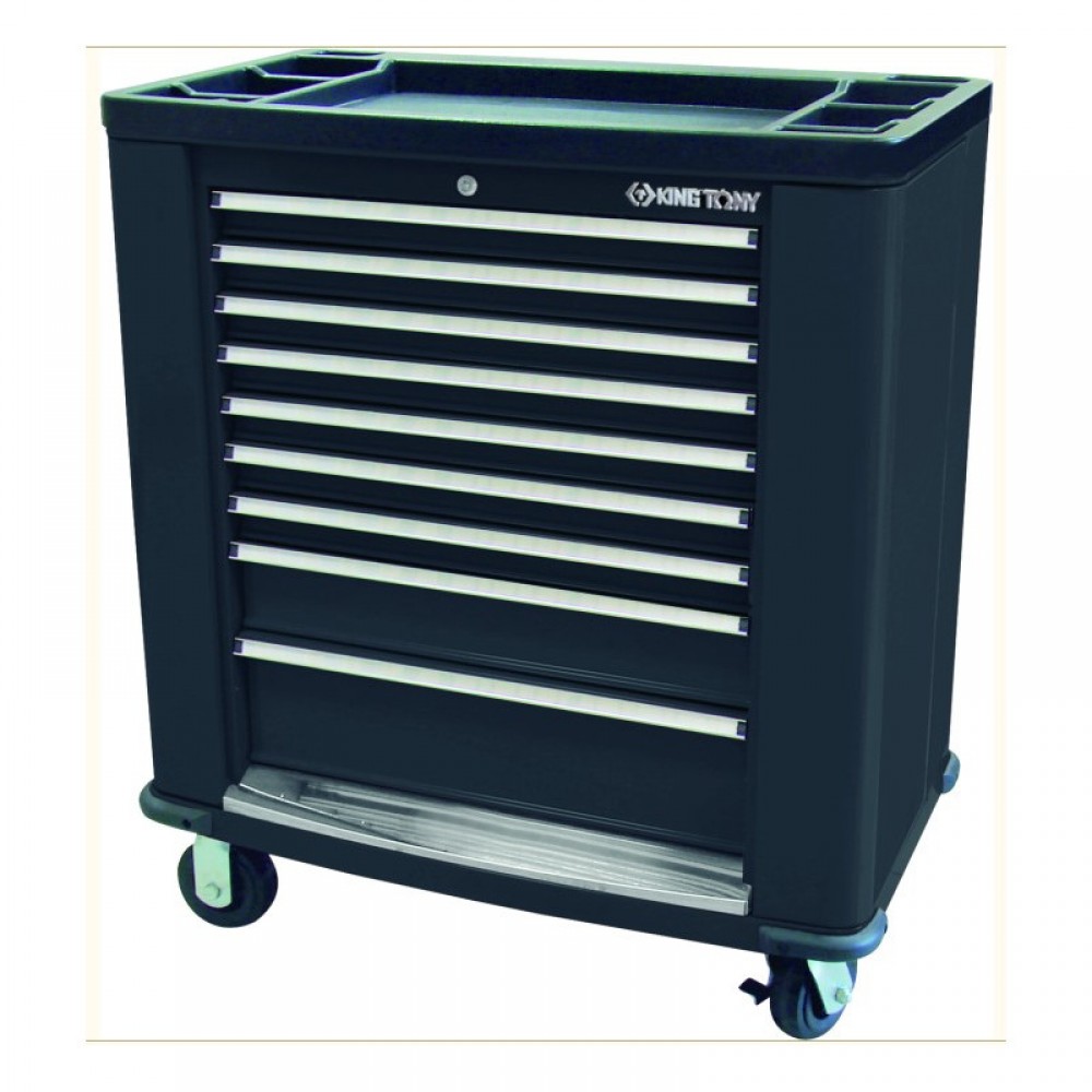 Тумба инструментальная с выдвижными ящиками (9 штук) ориентирована на использование в автосервисе и производстве. Особенность конструкции (87A38-9BA-K) в универсальности, которая упрощает доступ пользователю к ручному инструменту, аксессуарам и расходным материалам. Преимущества тумбы для инструмента: