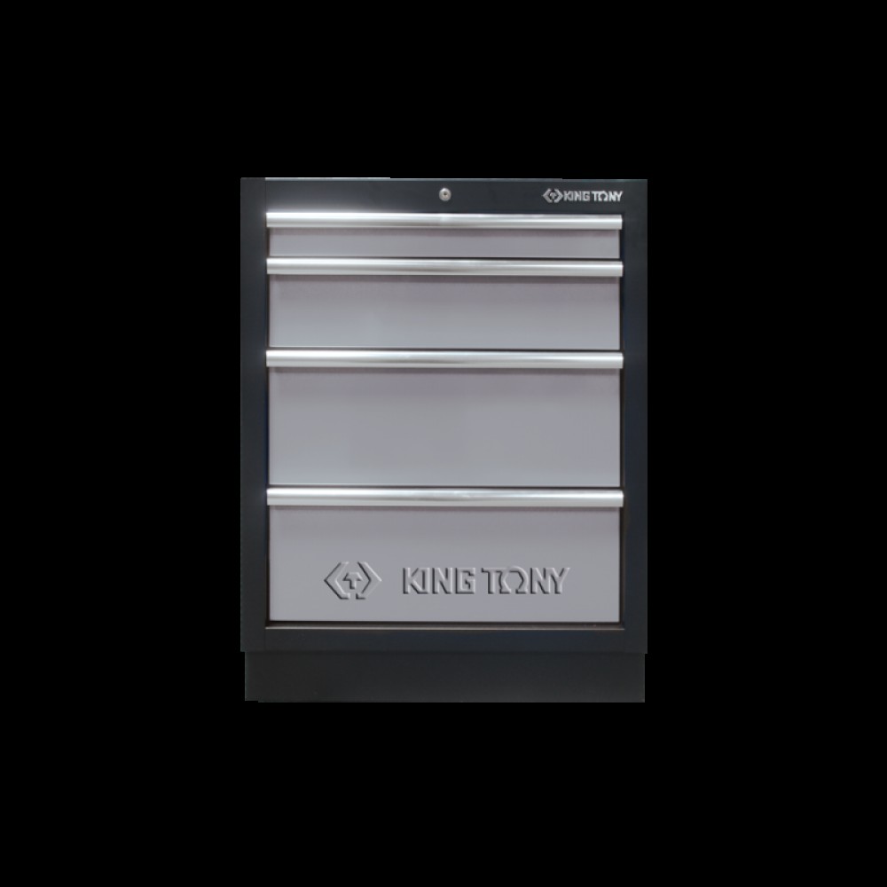 Помимо хранения ручного инструмента, тумба может использоваться для организации рабочего места слесаря. Для этого, на поверхности шкафа, есть жёсткое основание в виде столешницы. Жёсткости конструкции достаточно для того, чтобы выдержать нагрузку до 300 кг. Благодаря чему, на инструментальный шкаф можно ставить тяжёлые узлы автомобиля для хранения или обслуживания. Выдвижные ящики тумбы King Tony (87D11-04A-KG) дополнены фиксатором. Нагрузка на одну полку не должна превышать 30 кг.