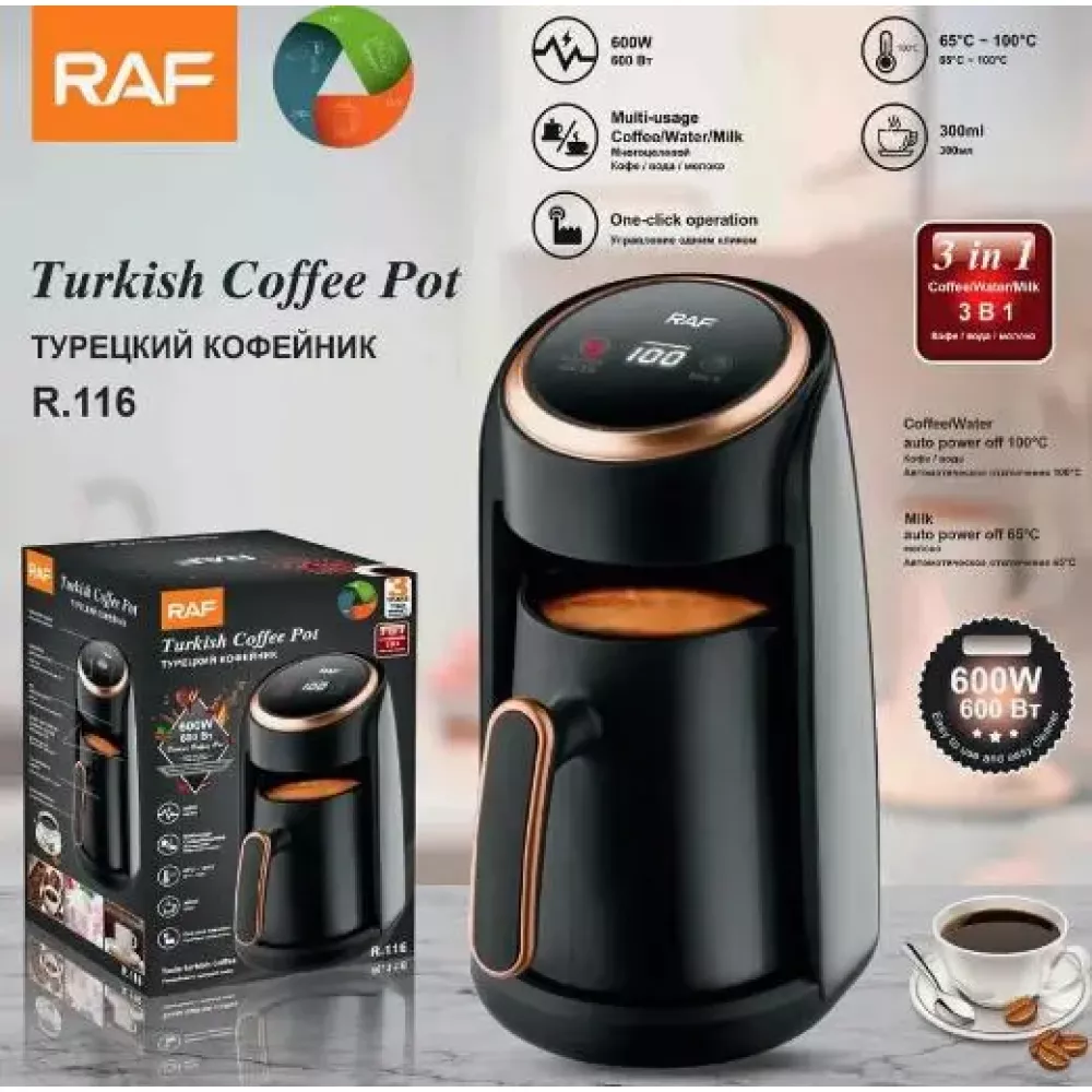 Электрическая турка 300 мл для кофе и молока – настоящая находка для любителей ароматного напитка. Бытовая и автоматическая кофеварка-турка в миниатюрном исполнении позволит вам наслаждаться изысканными кофейными напитками в любом месте. Созданная из качественных материалов и обладающая прочной ручкой, эта турецкая кофеварочная готова обрадовать вас неповторимым вкусом и ароматом напитка хоть каждый день. Она подойдет, если вы хотите приготовить классический эспрессо или другие разнообразные напитки, для которых требуется мини турочка. Размер этого устройства делает его идеальным для любой кухни. Незалежно от того, какое пространство есть у вас, эта стильная и компактная кофеварка подарит вам множество возможностей. Автоматическое отключение после завершения процесса гарантирует вашу безопасность и экономит электроэнергию.