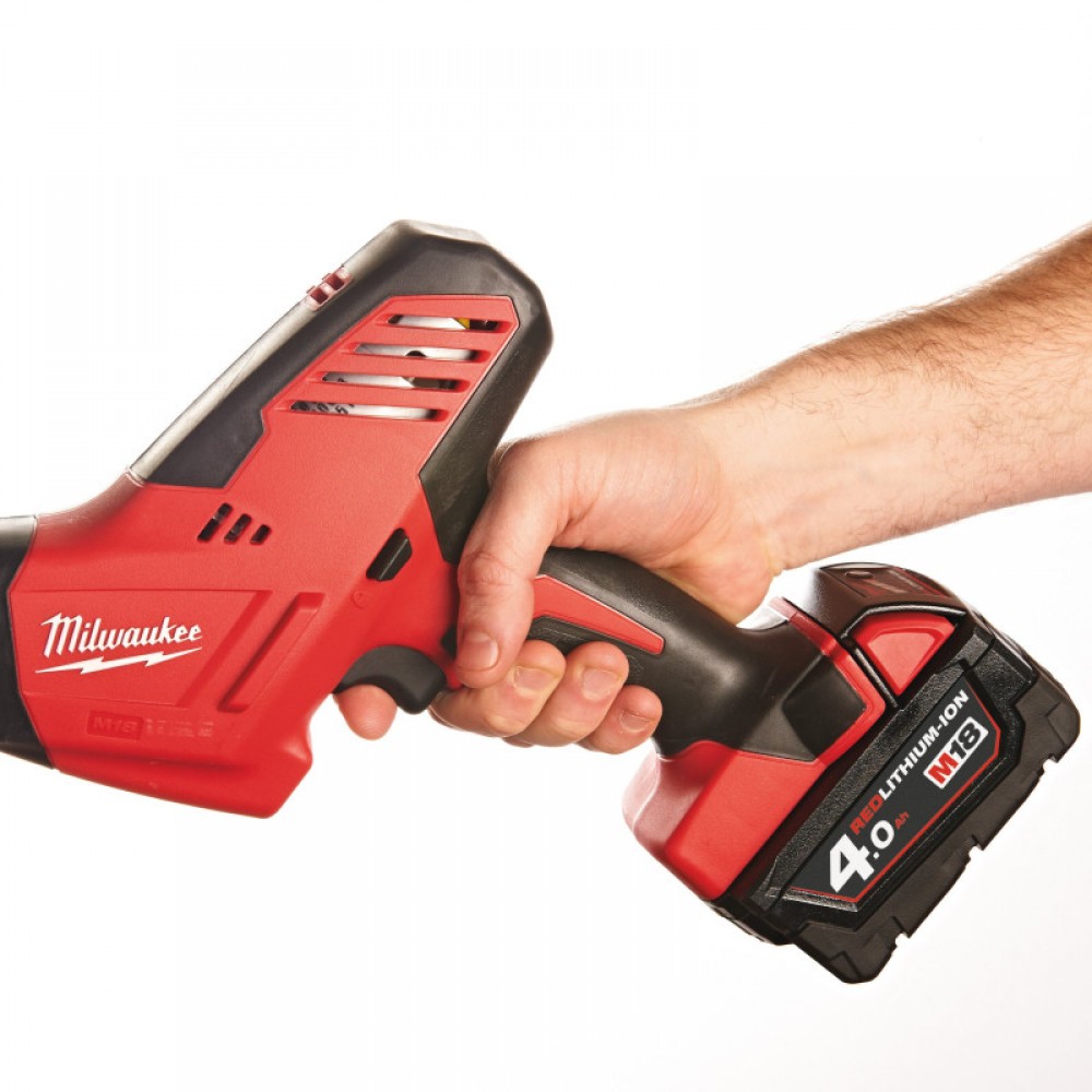 Високопродуктивна компактна одноручна шабельна пилка Milwaukee®, довжина 375 мм, ідеальна при роботі в обмеженому просторі.