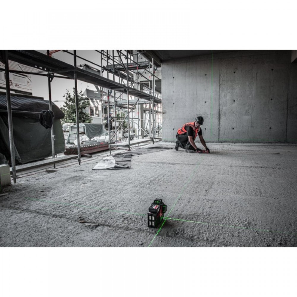 3-площинний лазер M12™ green 360° забезпечує функціональність «все-в-одному» з однією горизонтальною лінією та двома вертикальними лініями для швидкого та легкого вирівнювання, вирівнювання, прямокутної форми та перенесення, що дозволяє легко планувати великі простори одним інструментом