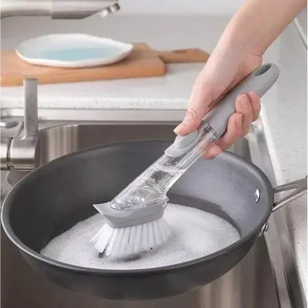 Багатофункціональна щітка для миття посуду DTMA з дозатором та насадками скоротить час перебування біля раковини та заощадить місце на кухні.