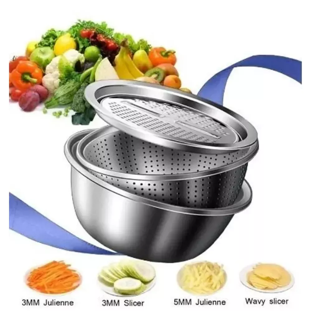 Тертка багатофункціональна, друшляк та миска для змішування з нержавіючої сталі