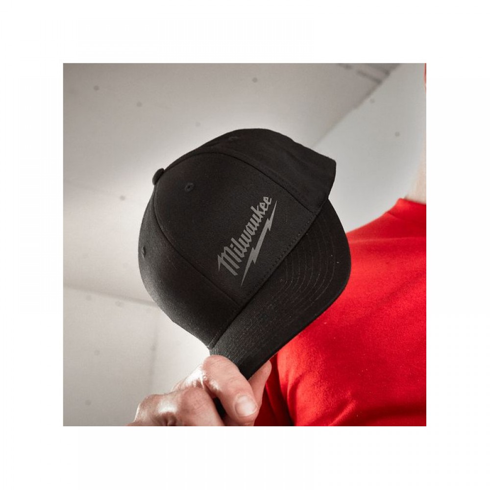 Бейсболка Milwaukee виготовлена з легкої суміші бавовни та поліестеру з регульованою гнучкою стрічкою.