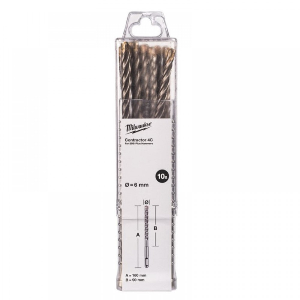 Бур SDS-PLUS 4C Contractor MILWAUKEE, Ø8х160мм, (10шт)