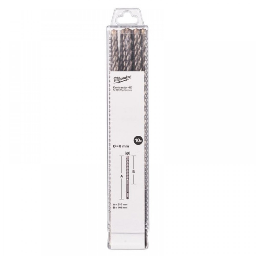 Бур SDS-PLUS 4C Contractor MILWAUKEE, Ø8х210мм, (10шт)
