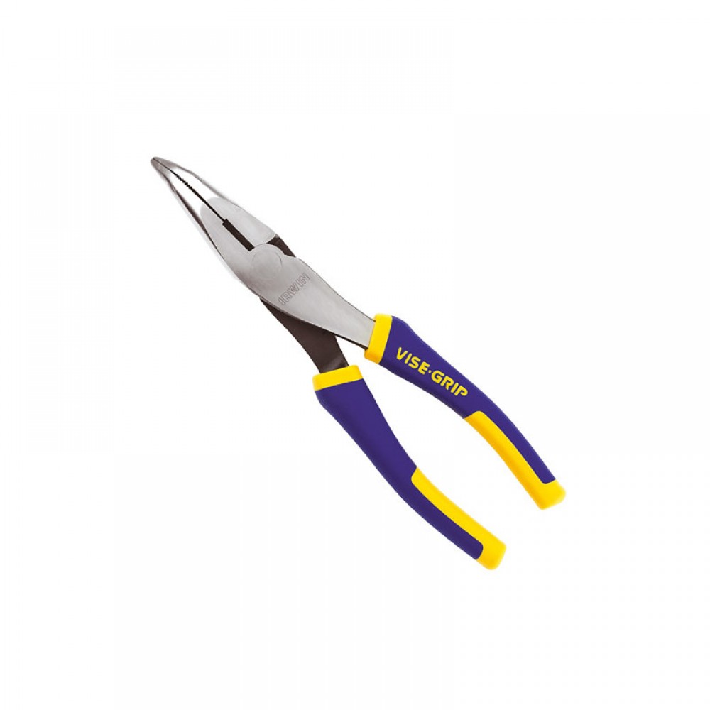 Довгогубці 200 мм вигнуті IRWIN * Інструмент виготовлений з хромонікелевої сталі, яка має підвищену міцність і стійкість до окислення (іржа) * Надійний шарнір дозволяє працювати з максимальним зусиллям без перекосу губок * Оброблені губки з спрямованими насічками, що забезпечують максимальну силу захоплення * Ріжучі кромки з індукційним загартуванням * Ріже кабель діаметром до 1.6мм * Формовані двокомпонентні ручки ProTouch для додаткового комфорту та запобігання ковзанню під час використання * Тонкий та вигнутий профіль носа проникає в обмежений простір