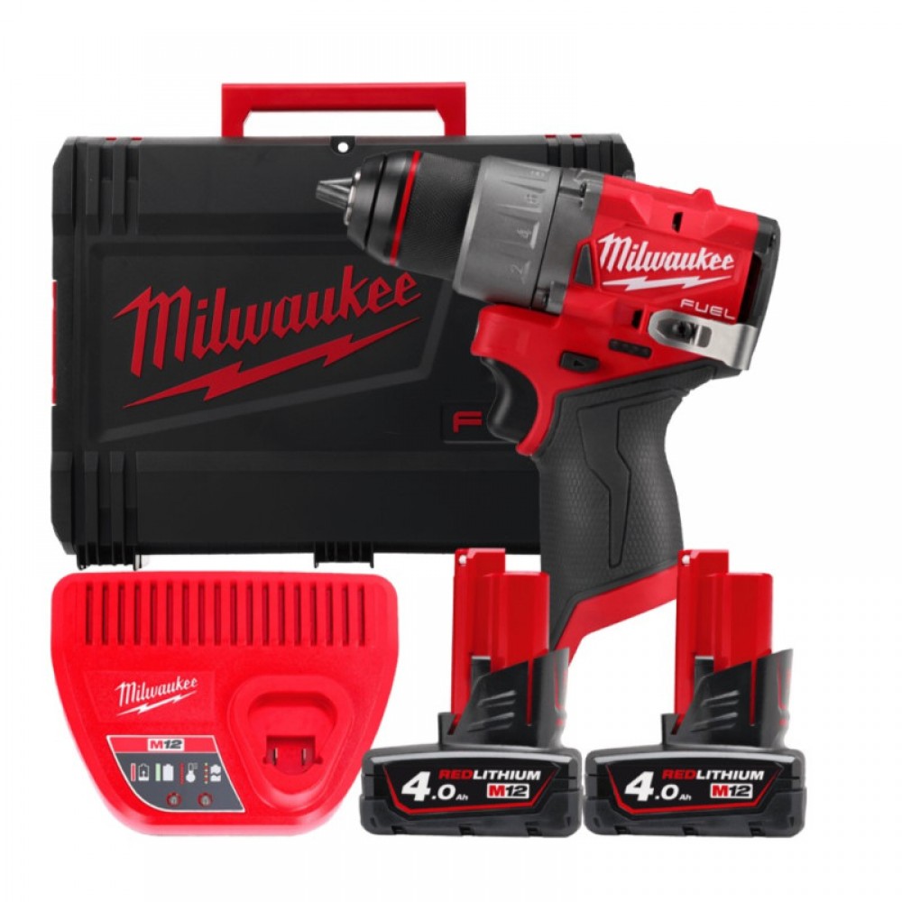 Дриль-шурупокрут акумуляторний MILWAUKEE, M12 FDD2-402X (+ заряд.пристрій, 2 акум., HD кейс)