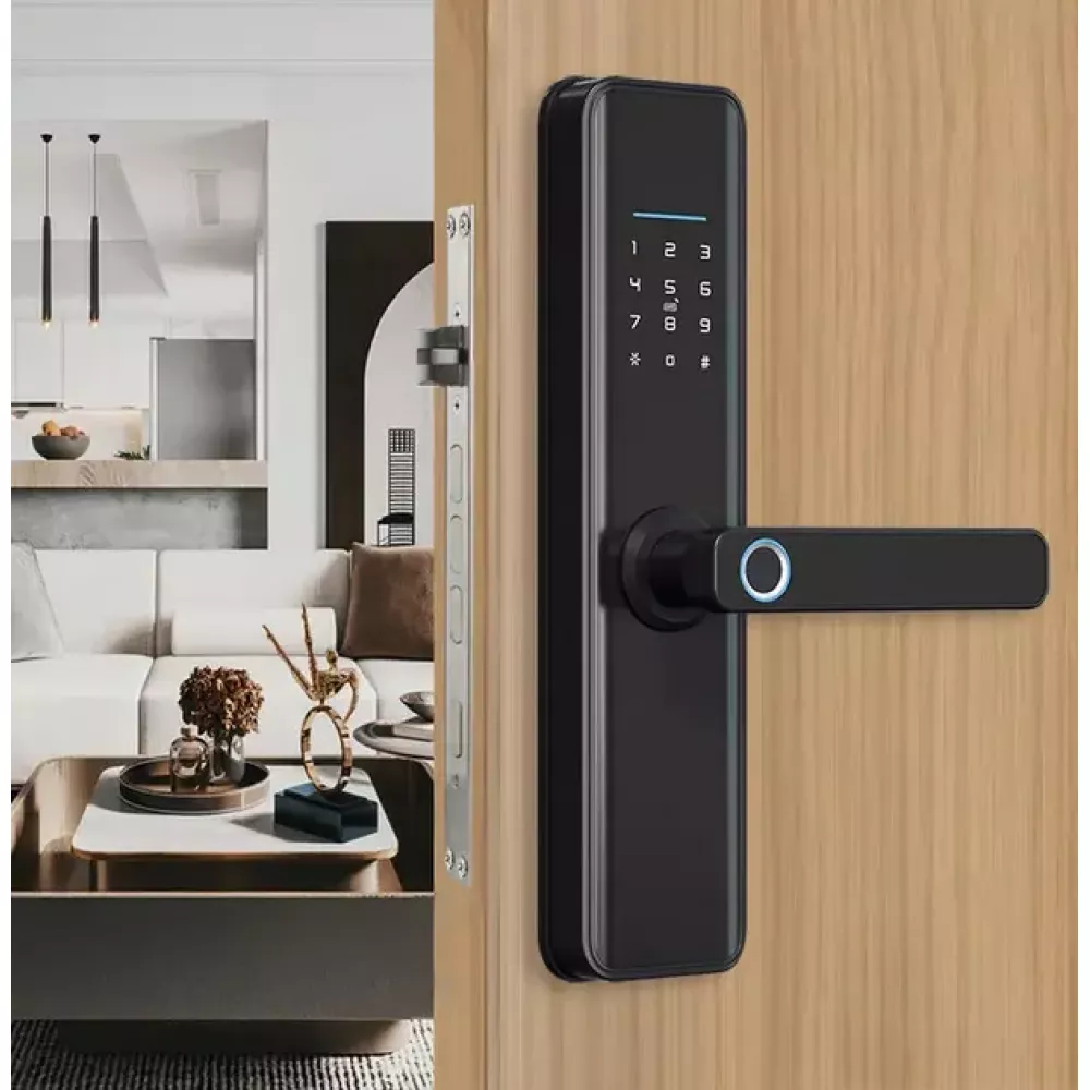 Біометричний замок Smart Door Lock – це передові технології; це також додає елегантність нотки у ваш будинок. Завдяки елегантному та мінімалістичному дизайну цей цифровий замок легко інтегрується з дверима будь-якого стилю, доповнюючи естетику вашого будинку.