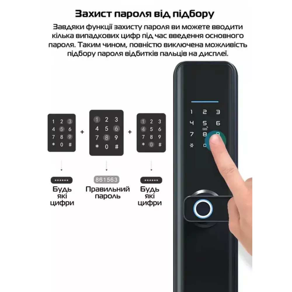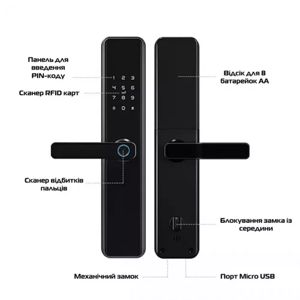Біометричний замок Smart Door Lock використовує сучасну біометричну технологію, що дозволяє відчиняти двері простим дотиком відбитка пальця.