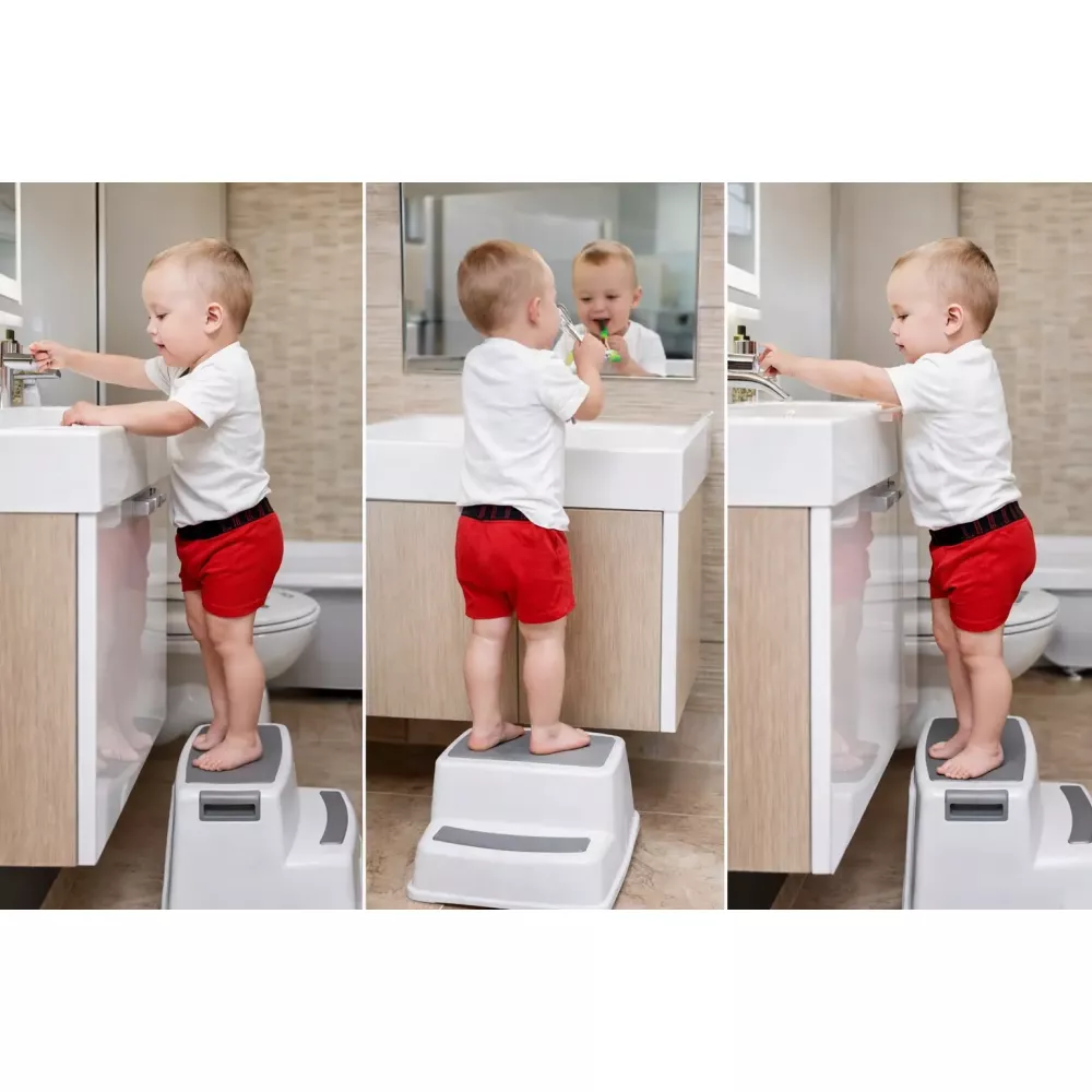 Унікальний дизайн, що містить літери та цифри, надає їй особливого шарму. Кожен крок підставки має текстуровану поверхню, яка запобігає ковзанню та допомагає зберегти баланс, особливо для маленьких дітей. Завдяки екстрашироким щадним підставкам ідеально підходить для дітей, що зростають, допомагаючи їм з легкістю переходити від освоєння туалету до миття рук, чищення зубів і досягненню кухонних шаф вдома.