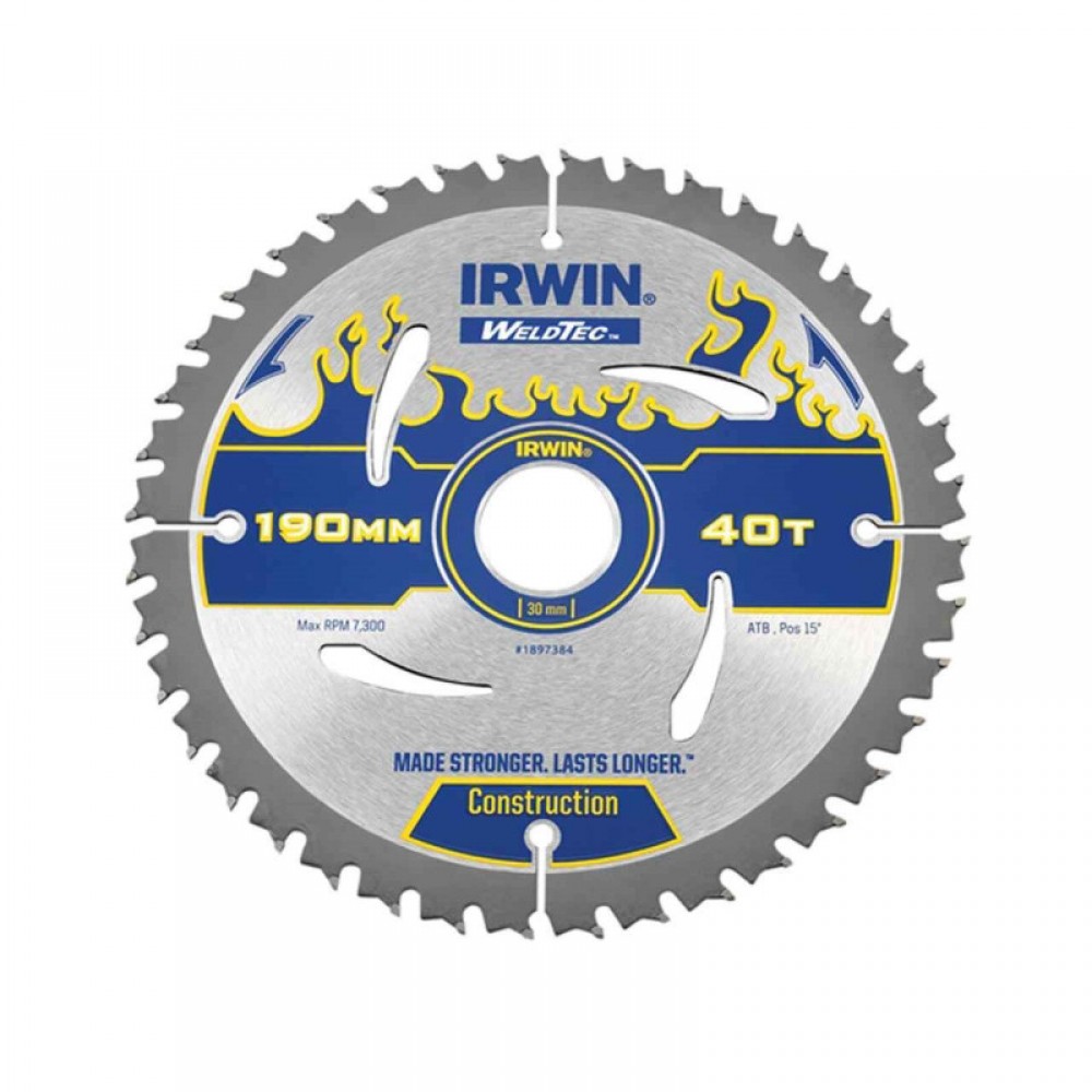 Диск пильний по деревоматеріалам Weldtec CSB 190мм/40T/30/20, IRWIN Зварні твердосплавні зубці на 30 відсотків міцніші, ніж припаяні зубці, що збільшує термін служби на 50 відсотків. Надкомпактний твердий сплав - на 70 відсотків міцніший за стандартний твердий сплав, що забезпечує чудову різкість і якість різання. Повністю загартована пластина працює точніше, продовжує термін служби та довговічність. Інноваційні тепловідведення. Чергування шліфування зуба верхньої фаски (АТВ) для поперечного розрізу і розпилювання дерева всіх порід. У комплекті редуктор-перехідник для отвору на 20мм. Про WeldTec: WeldTec на полотнах циркулярної пилки - це приварювання зубів до полотна на відміну від традиційного паяння зубів. Ідеально підходить для ручних та акумуляторних лез, оскільки зварний шов забезпечує міцне з'єднання у разі несподіваних ударів цвяхами або попадання сторонніх предметів у дерево.