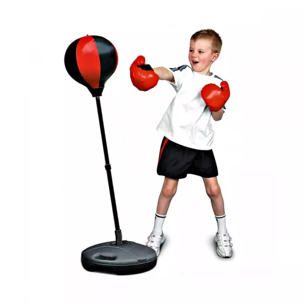 Чудовий боксерський набір для Вашої дитини! Він складається з груші діаметром 22 см, яка кріпиться на стійку висотою 102 см, також тут Ви знайдете відмінні рукавички для боксу з шкір-заступника. Даний снаряд служить для відпрацювання швидких і точних ударів. Може використовуватися в приміщенні і на вулиці. Призначений для дітей старше 4-х років.