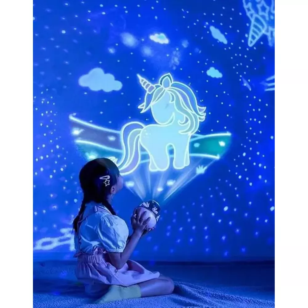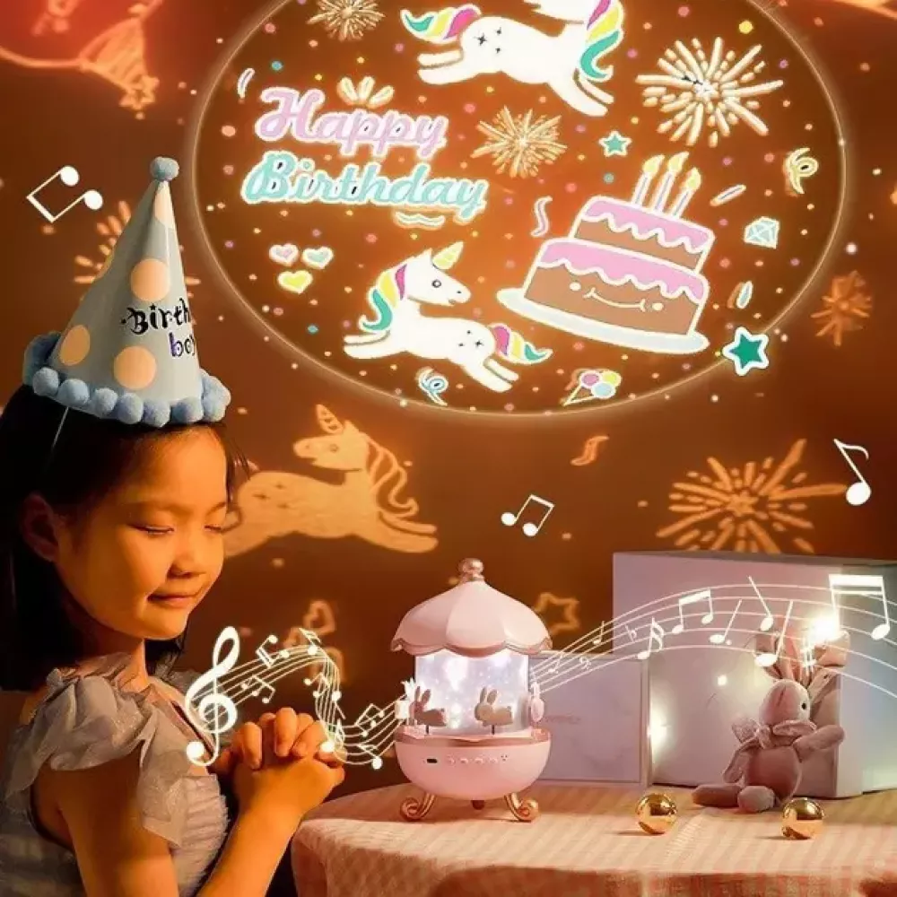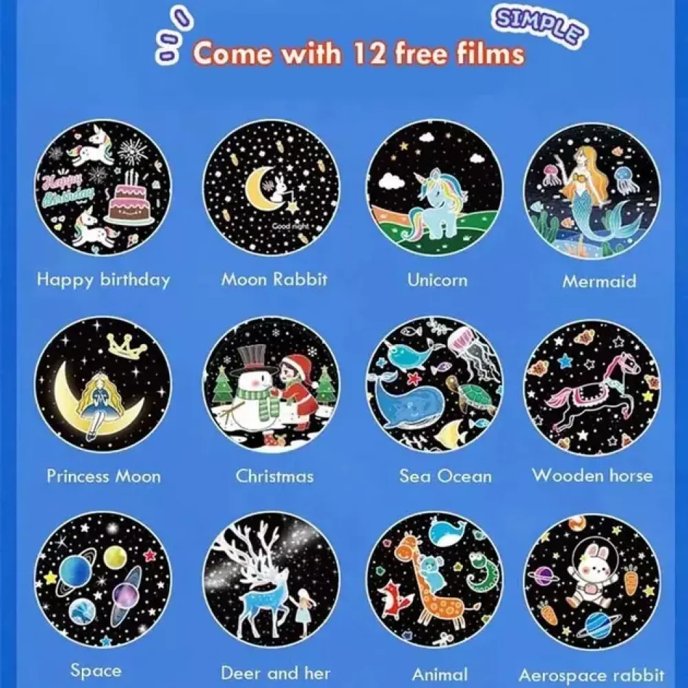Казкова карусель вам точно не набридне, оскільки проекція може бути не тільки бічна, а й верхня. Ну і в комплекті йдуть змінні плівки, які можна підібрати під настрій чи урочисту подію.