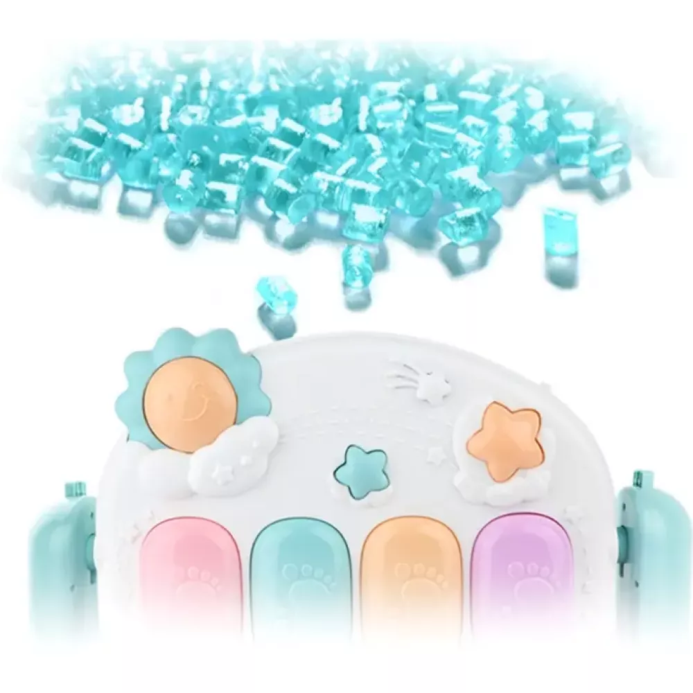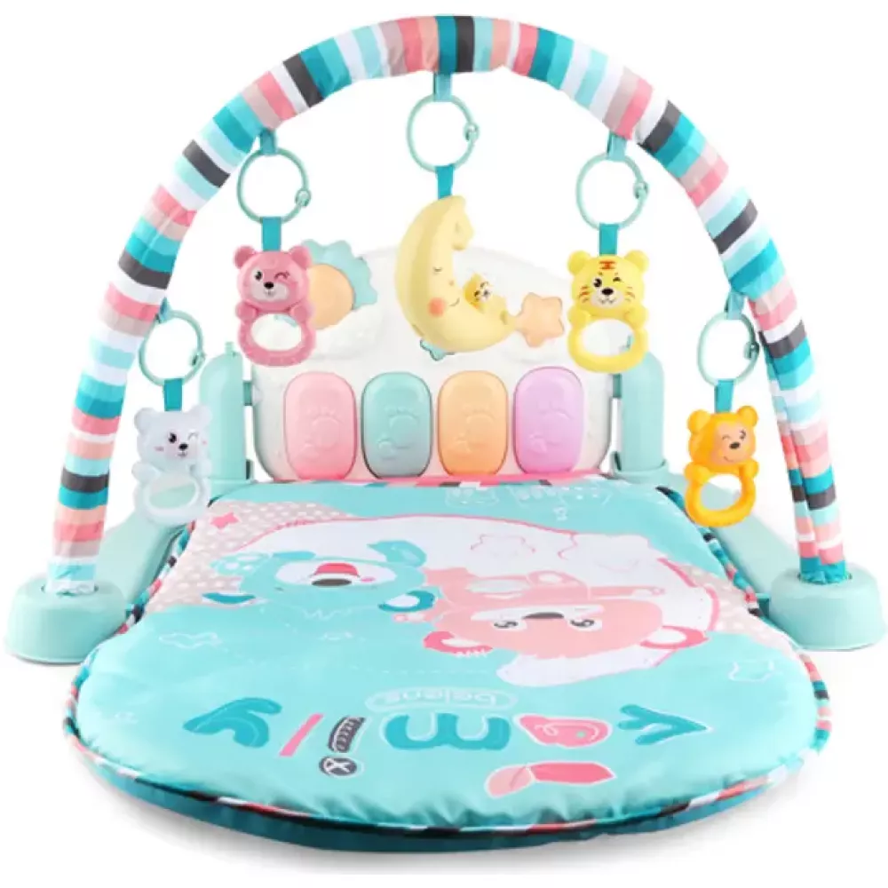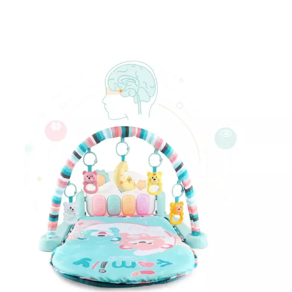 Чудовий розвиваючий ігровий килимок для Вашого малюка. Завдяки приємному на дотик матеріалу, дитині сподобається повзати, грати та проводити час на килимку. Вгорі на дузі підвішені брязкальця у формі різних тварин, які можна знімати та давати малюкові для ігор. Серед них є півмісяць, що може світити приємним світлом. У нижній частині килимка розташоване дитяче піаніно. При натисканні на клавіші воно видаватиме різноманітні звуки та програватиме мелодії. Коли ваше маля вже навчиться сидіти, піаніно можна встановити горизонтально. Всі компоненти килимка виготовлені з високоякісних матеріалів і безпечні для дитини. Барвиста упаковка зробить килимок чудовим подарунком.